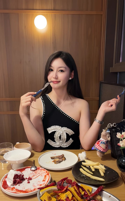 25 Metal Letter Hollow Short Navel-Exposed Suspender