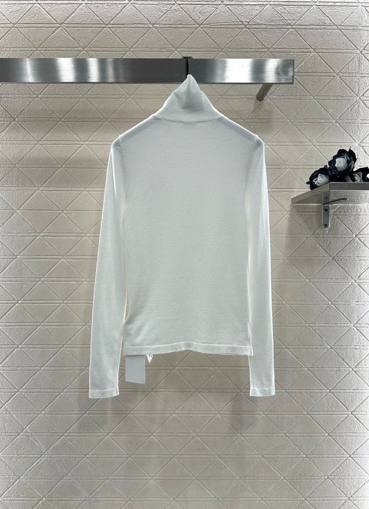 25fw Slim fit rhinestone double C high neck base shirt