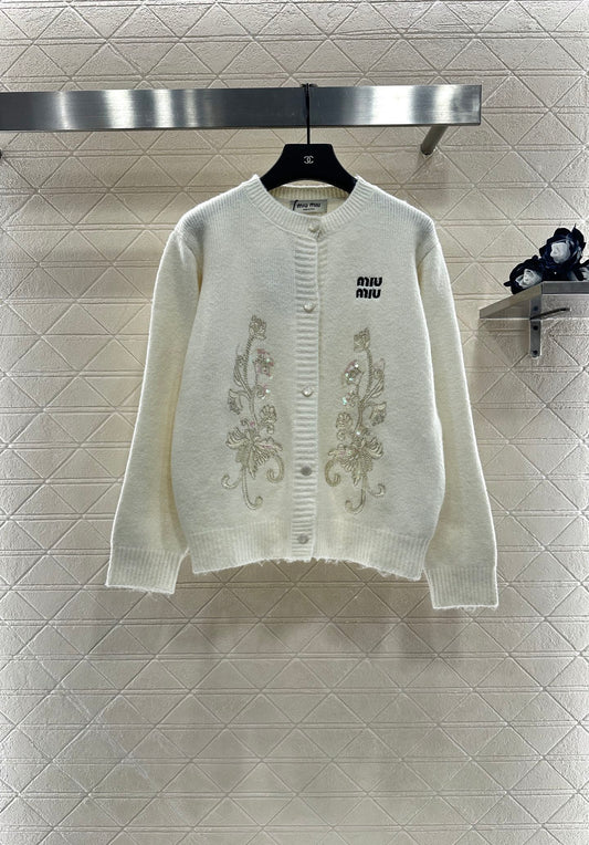 25fw new round neck embroidered knitted cardigan
