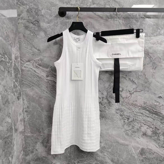 Classic 3D Checkered Texture Knit Vest Dress