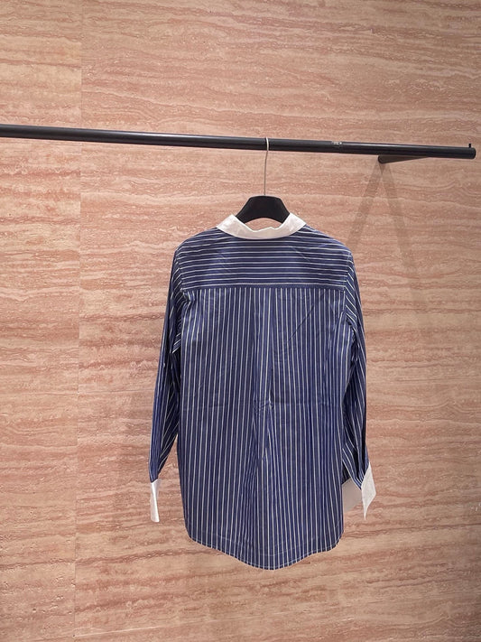 25fw Striped patchwork collar shirt(vintage series)