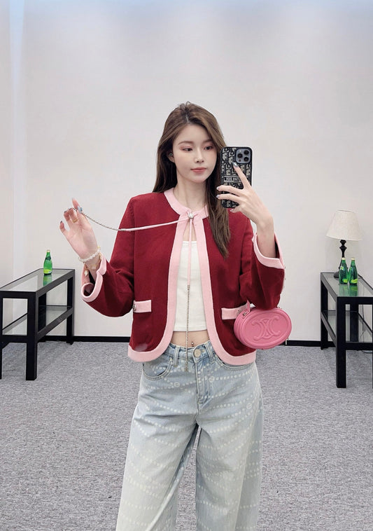 25 Spring and Autumn Letter Knitted V-Neck Long Sleeve Cardigan