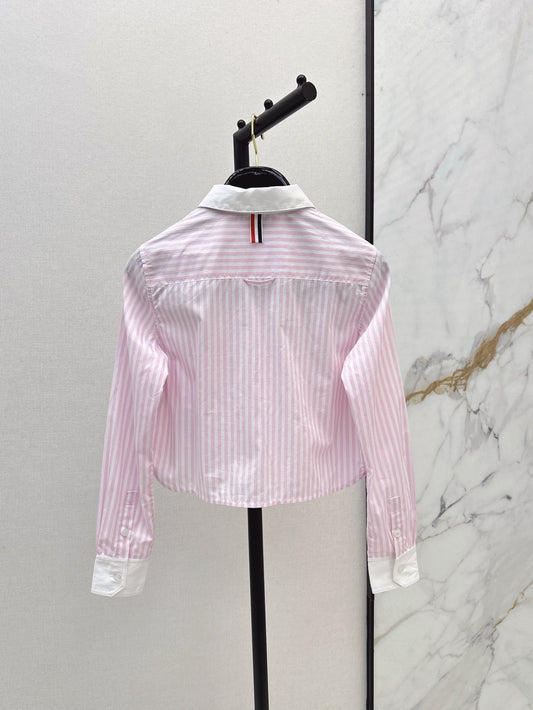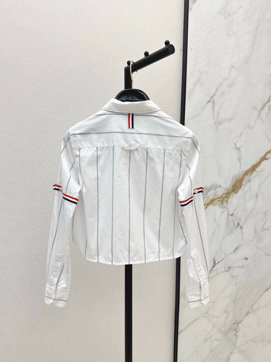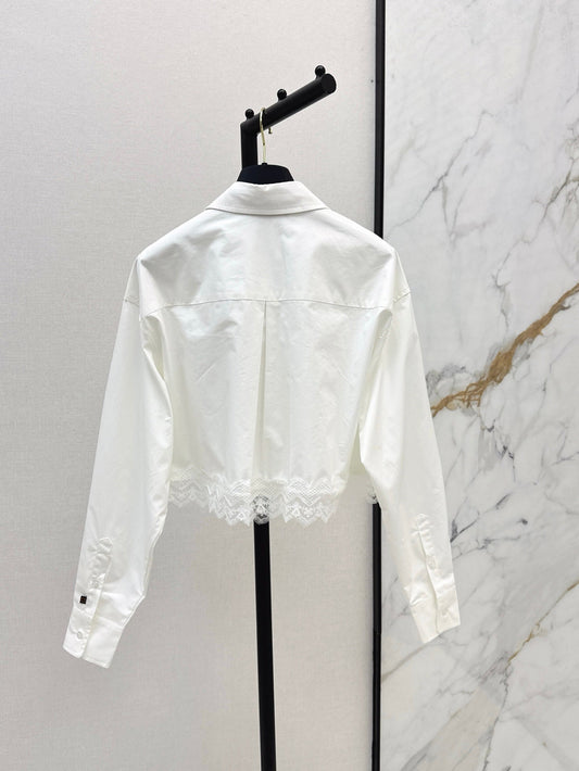 Versatile Fashionable Gradient Washed Cropped Denim Shirt