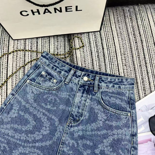 25 Early Spring and Summer Design Printed Denim A-Line Skirt