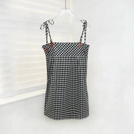 25SS Summer New Plaid Halter Dress