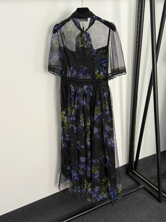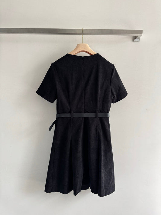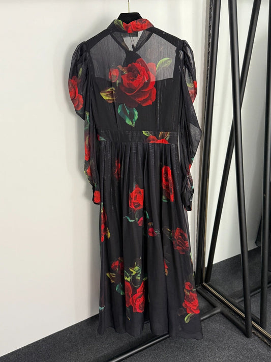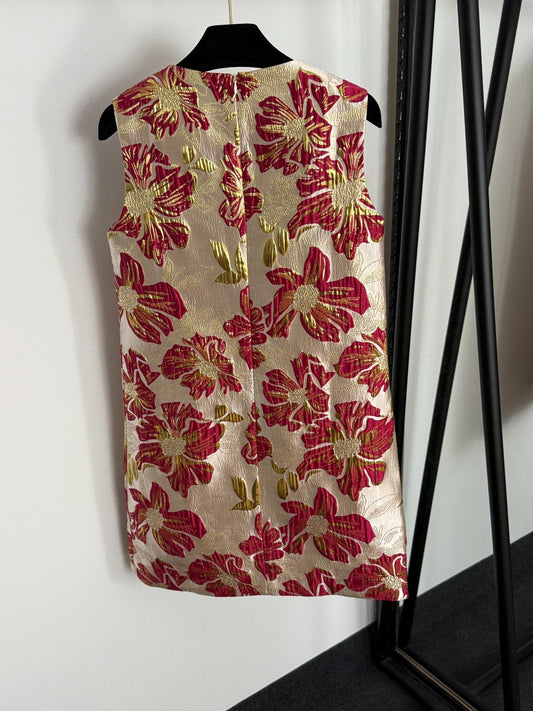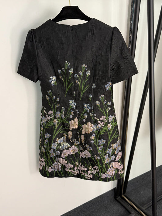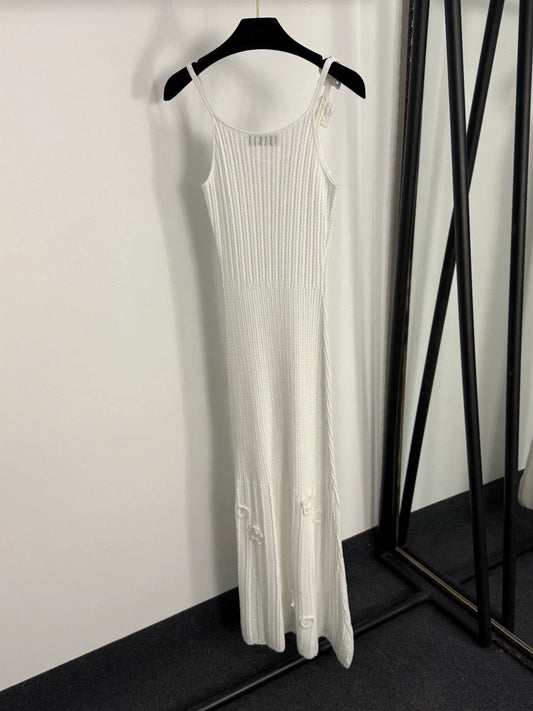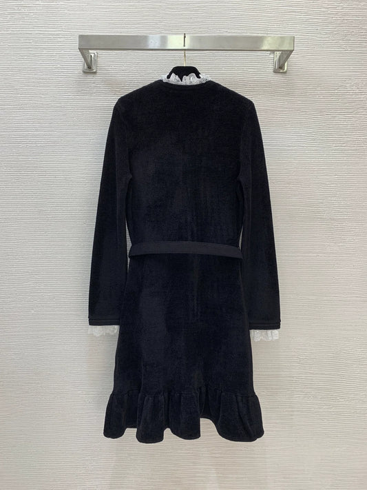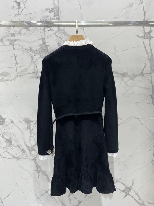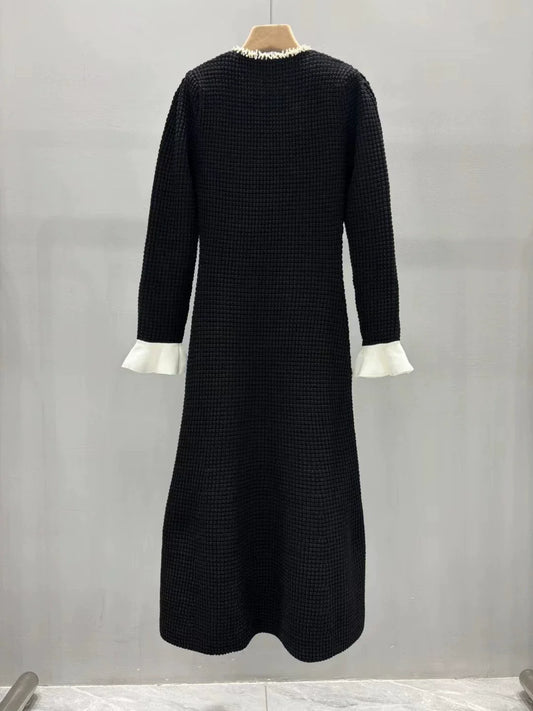 25fw Hook flower contrasting lapel long sleeved knitted dress
