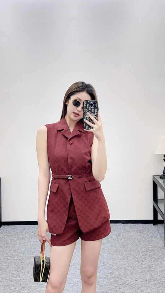 25 Belt vest shorts set