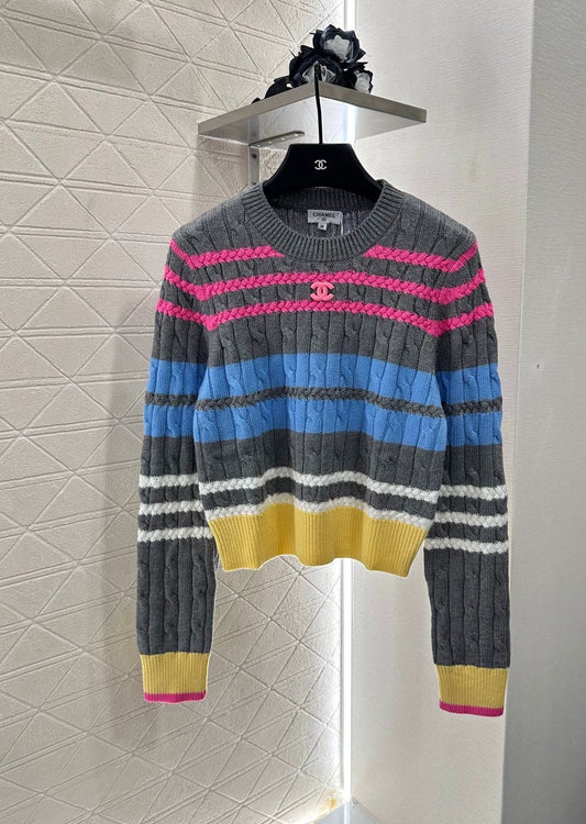 25 Striped Letter Knit Sweater