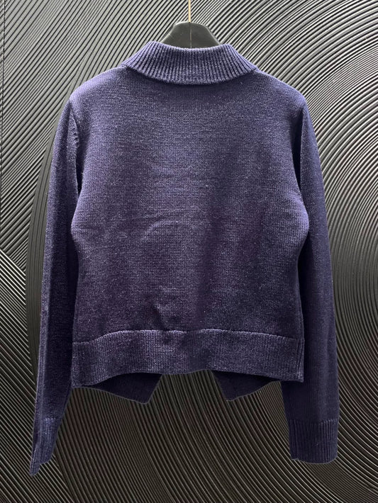 Stand up collar double zipper knitted cardigan