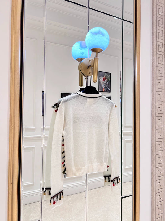 25fw Color blocking fringe design sweater(vintage series)