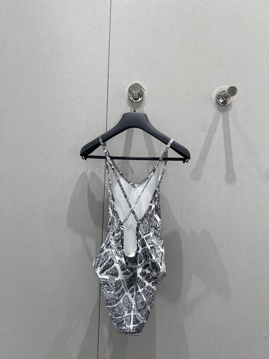 25ss Spring and Summer New Limited Edition Paris Map Printed Camisole One-Piece Swimsuit