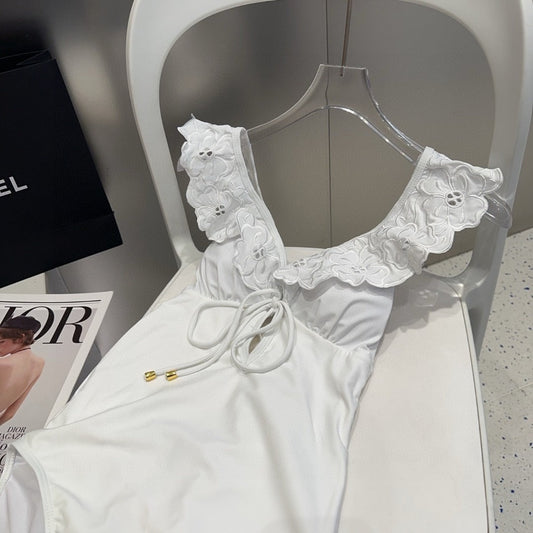 25 Flower Shoulder White One-piece Swimsuit