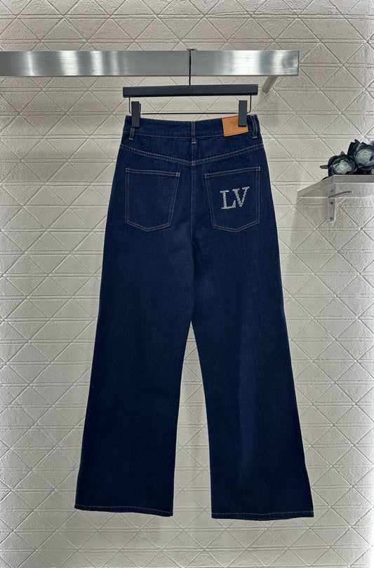 25fw Embroidered letter denim straight leg pants