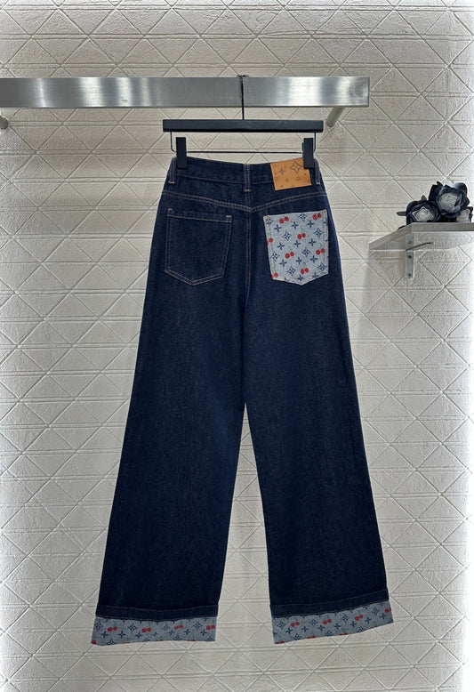 25fw Cherry print denim pants