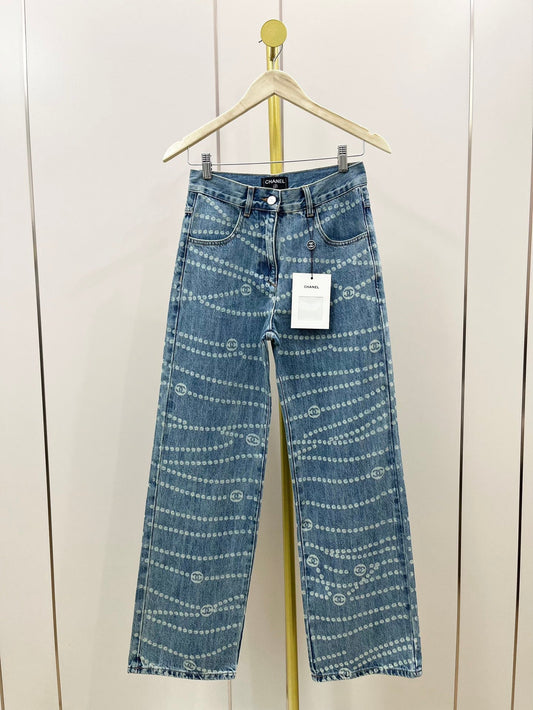2025SS New Product Laser Pearl Chain Pocket Jeans