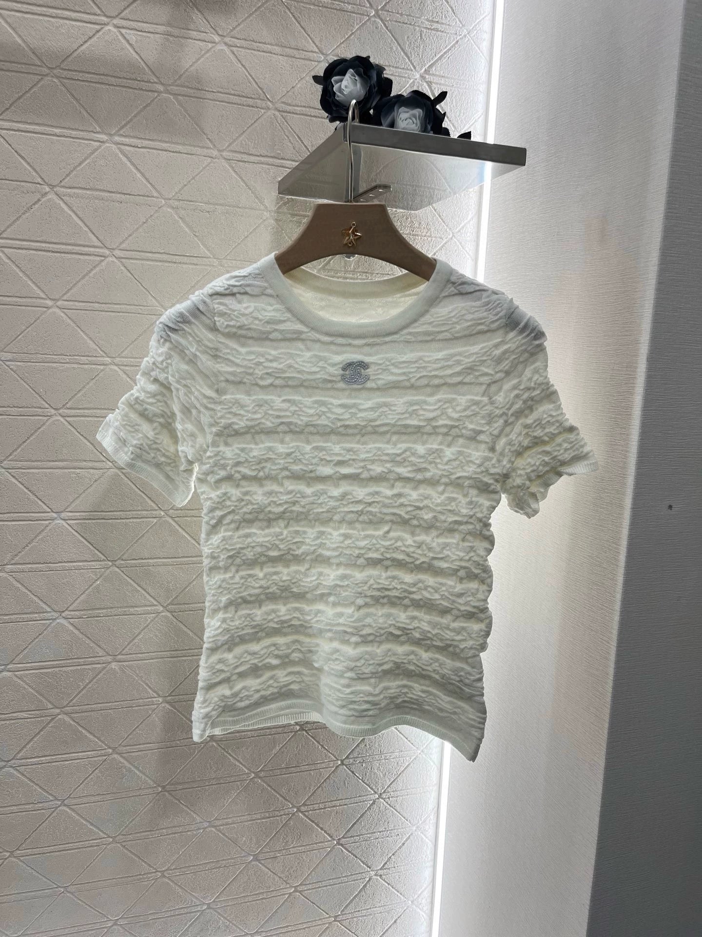25 Early Spring New Embroidered Bubble Texture Knitted Short Sleeves