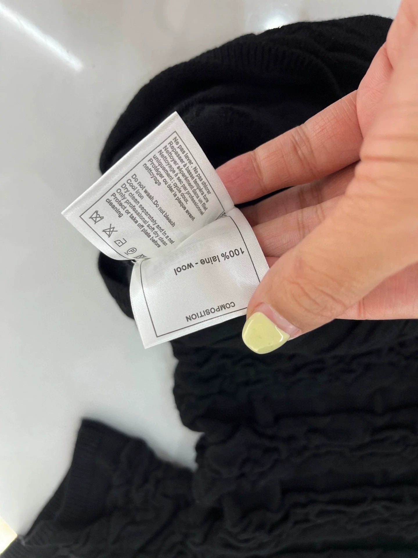 Delicate texture, soft and comfortable, with obvious plush texture for extra weight, round neck knitted short sleeves, elastic thread edging on the neckline and cuffs, colliding with the bubble-like pleated texture of the large body to form a sense of layering, strong classic black and white retro style, slim fit to highlight the figure, fashionable temperament, versatile style regardless of age or skin color, suitable for fashionable and stylish style when paired with skirts and pants