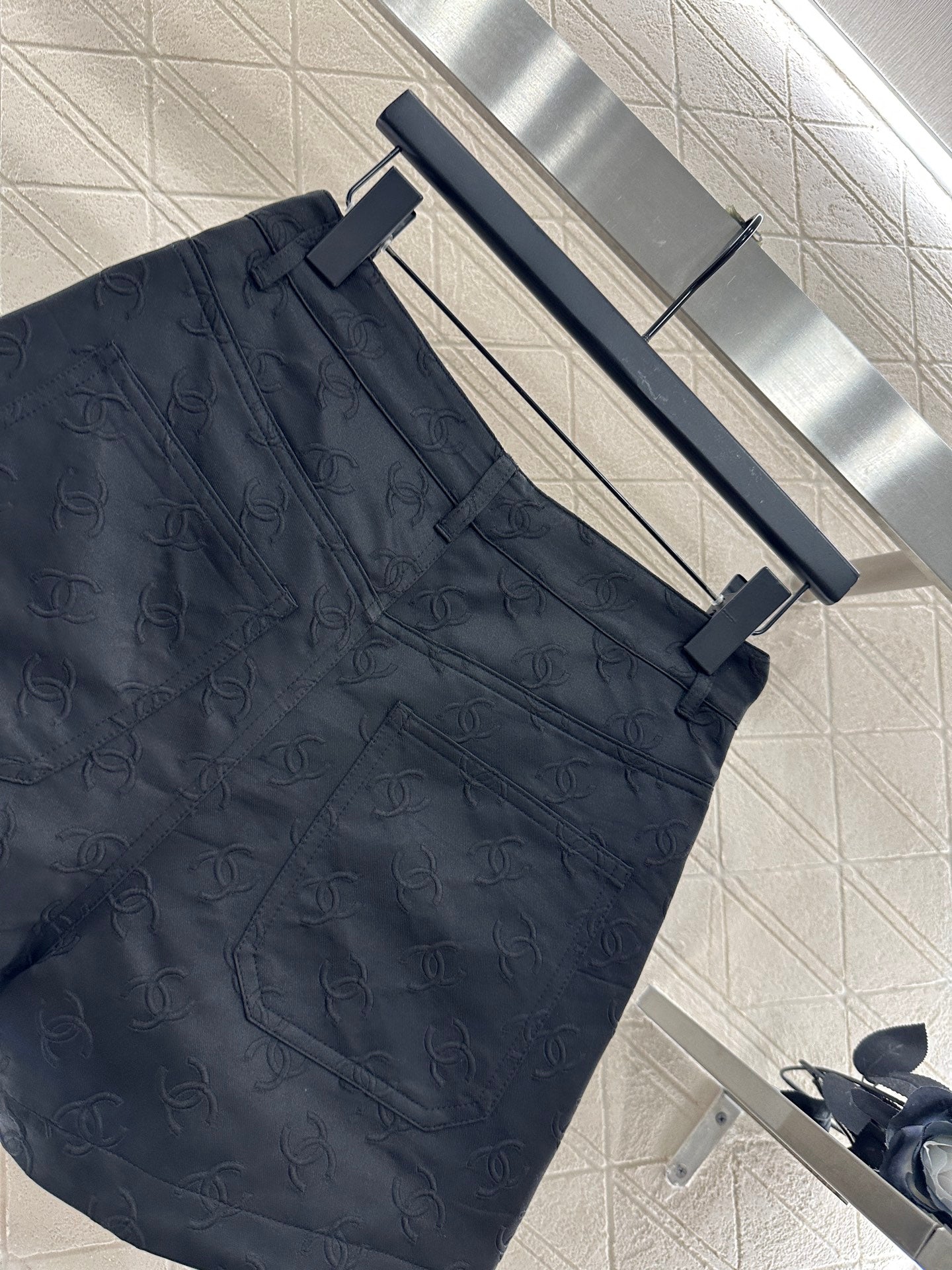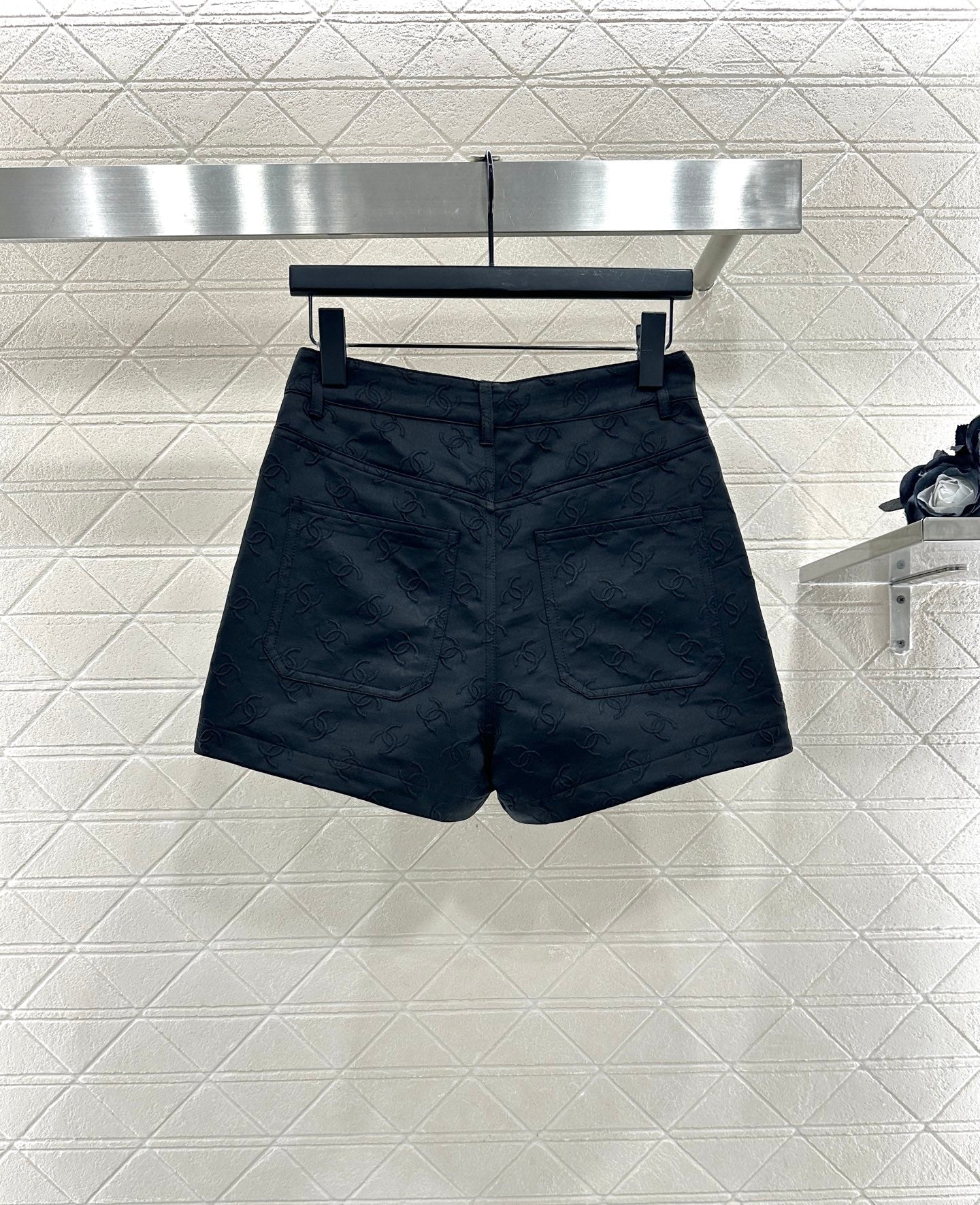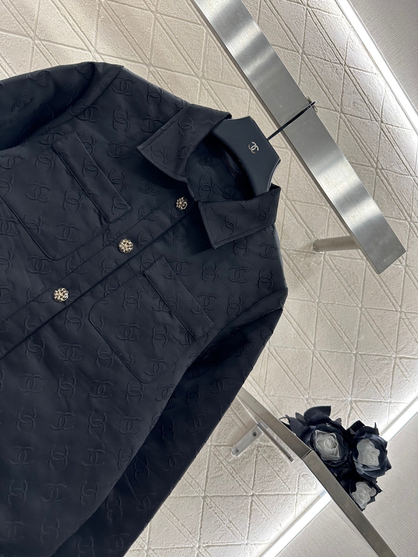 Jacquard material, high-quality texture, full of appearance, fully covered with double C throughout, with a prominent style. Symmetrical pocket jacket shorts set, with a shoulder design that fits the human body, making the body look slender and straight. The flower round buckle on the front of the shirt shines and is charming. Paired with high waisted shorts of the same series, the jacquard double C echoes, perfectly interpreting the casual luxury, fashionable style, and daily commuting