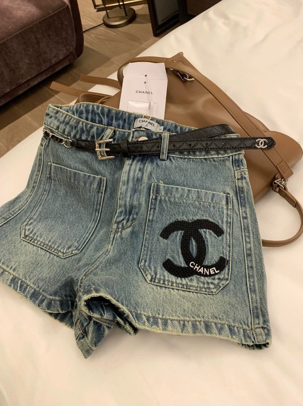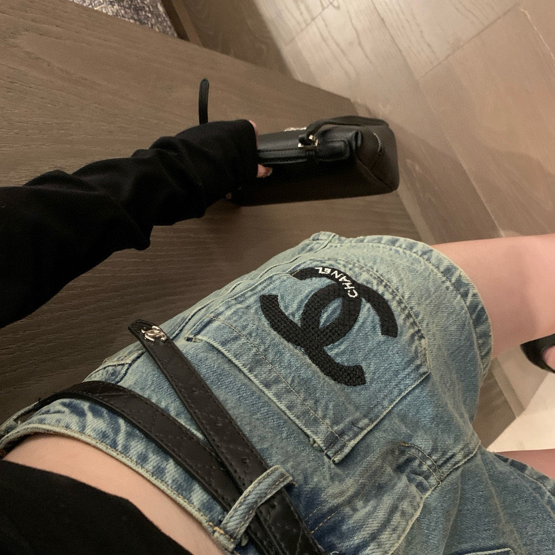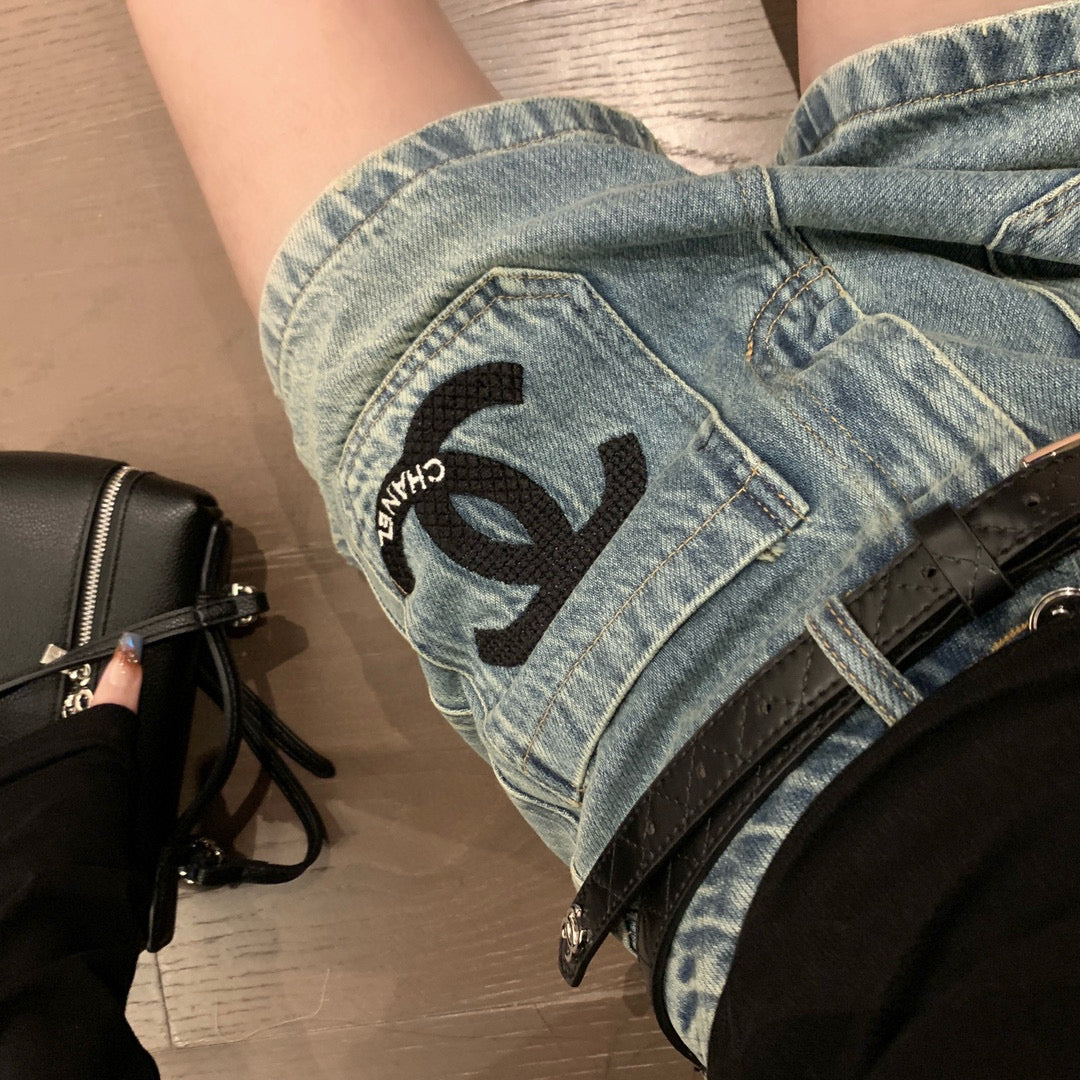 25 Summer New Double C Embroidery Pocket Denim Shorts