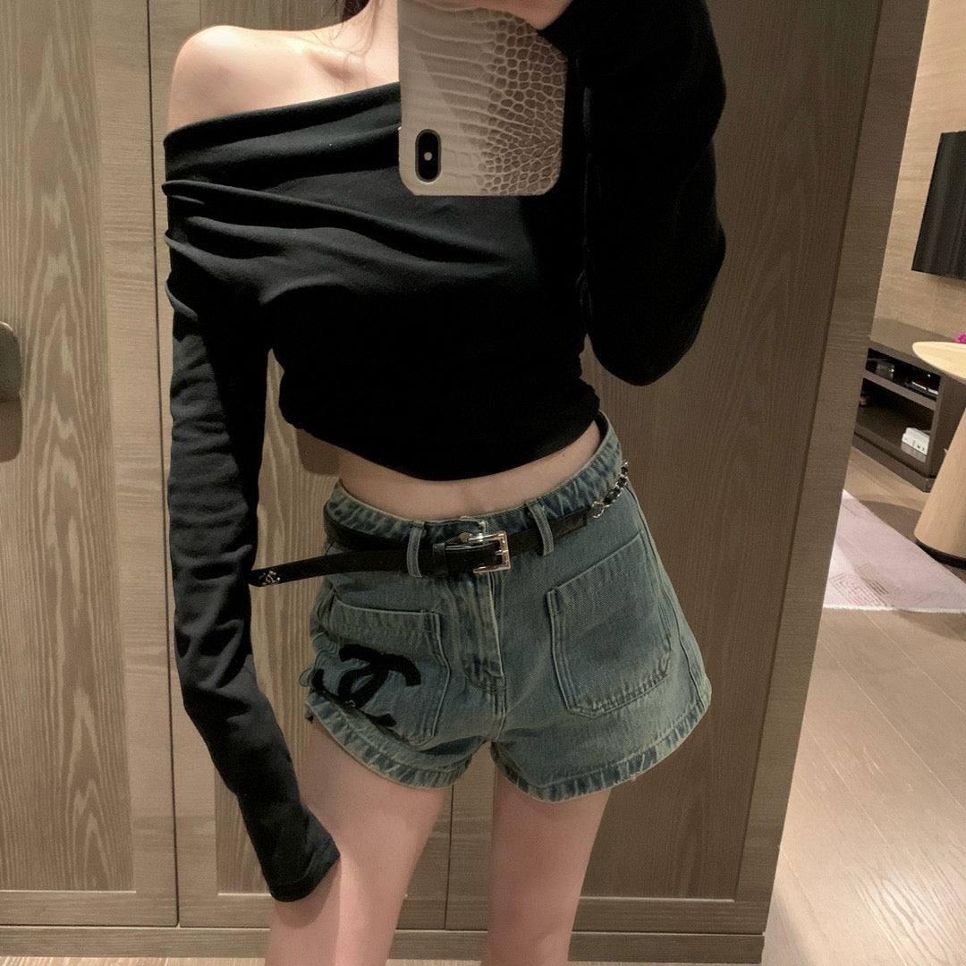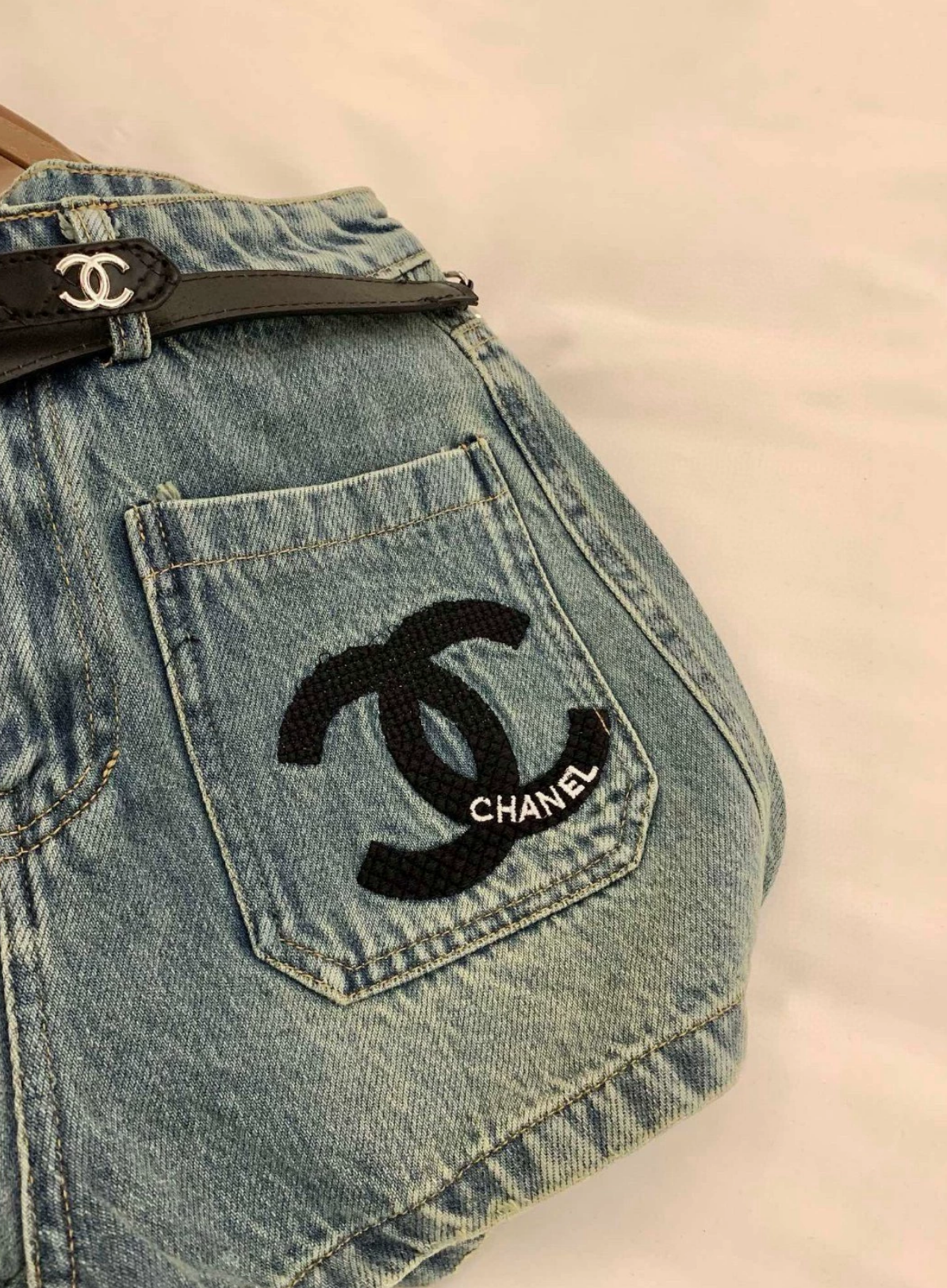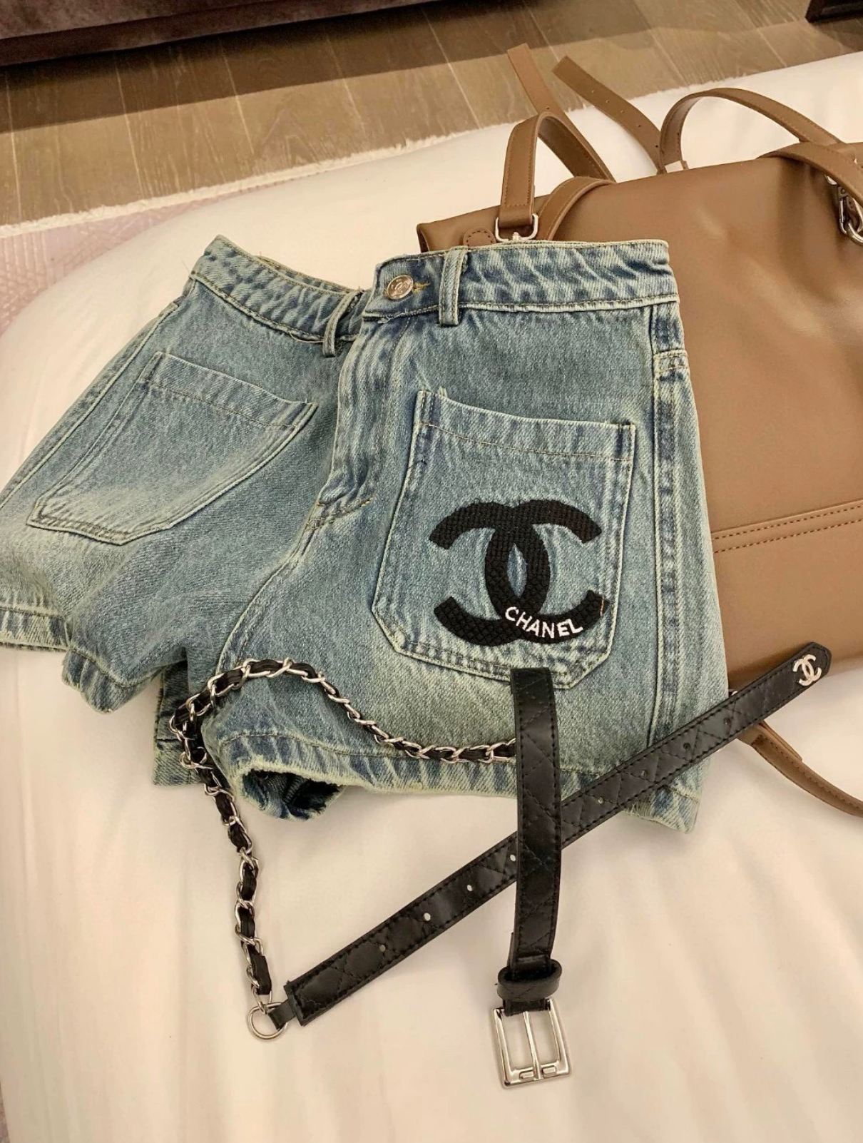 25 Summer New Double C Embroidery Pocket Denim Shorts