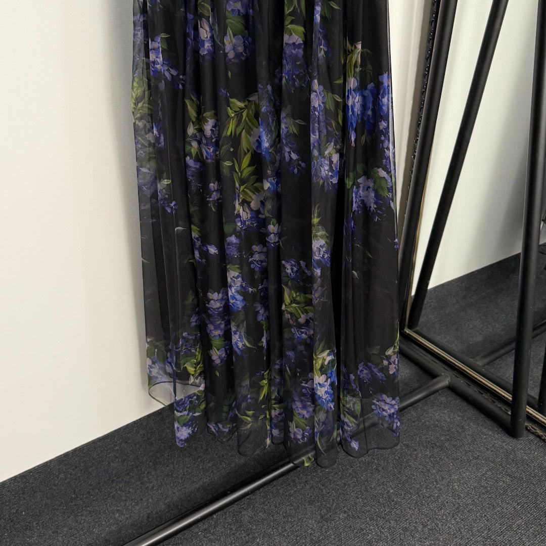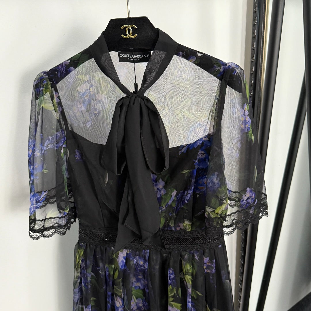 Purple floral print sequined lace waist bow tie collar short sleeves, the upper body is slim and slim, super temperament