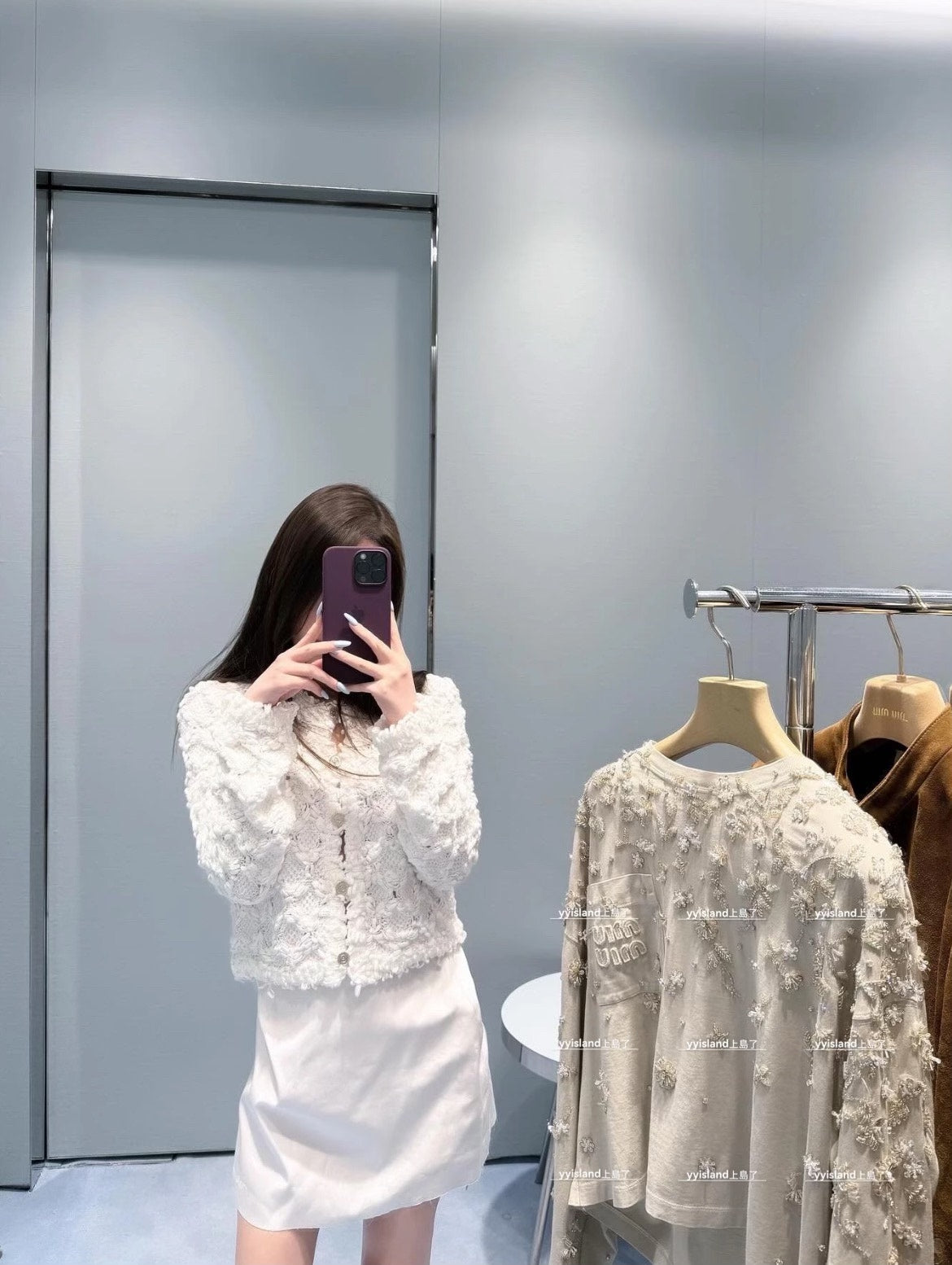 Custom wool yarn weaving, soft and comfortable, stylish and slim round neck cardigan cut, shoulder line outline, three-dimensional crochet pattern throughout, single row of round buttons, exquisite and full of fashion matching