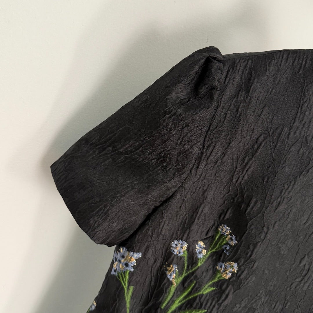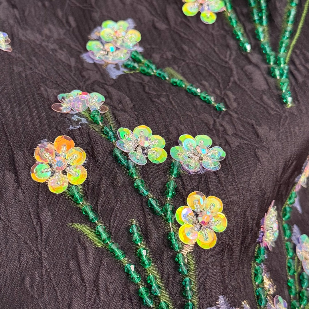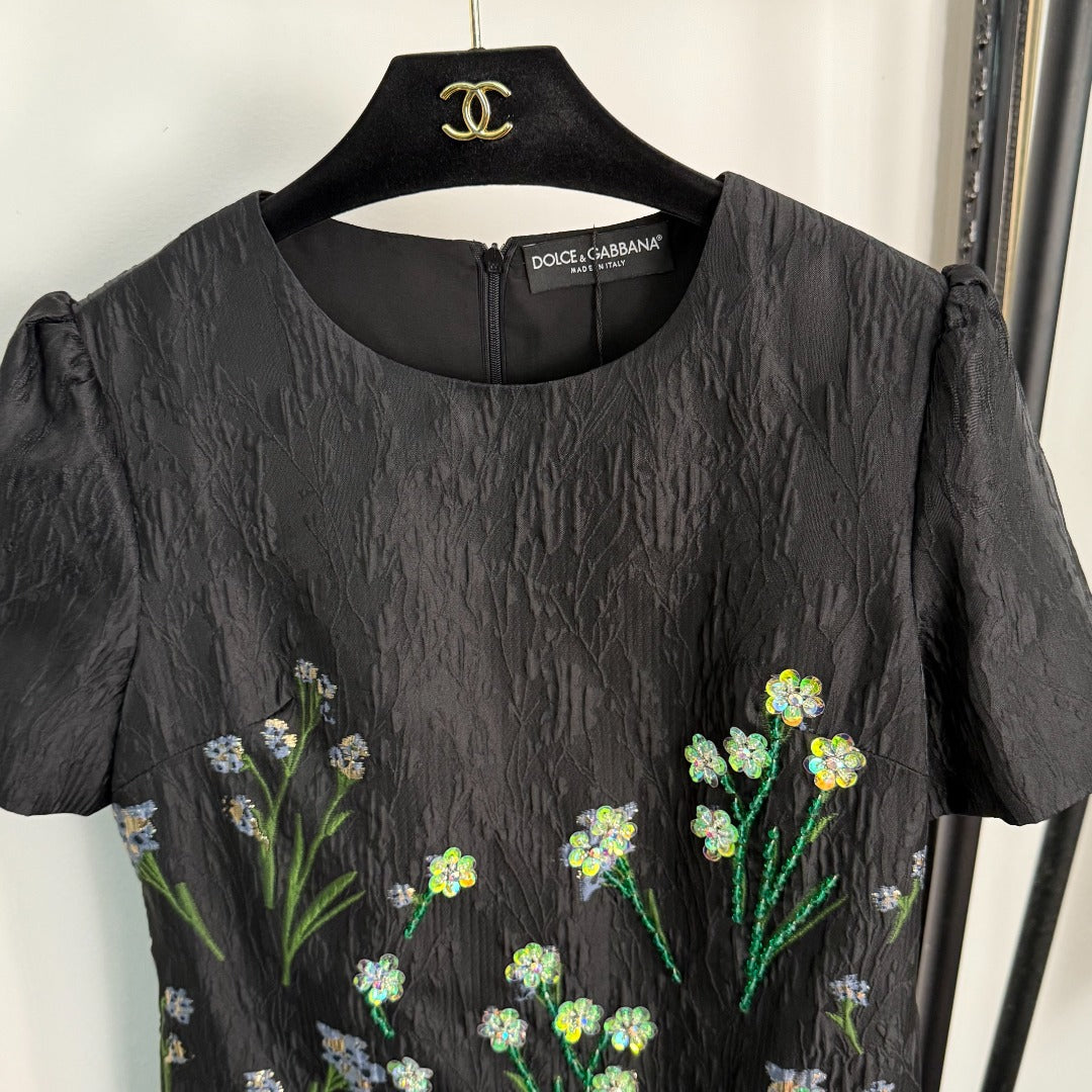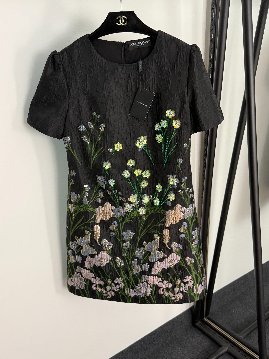 Heavy beaded sequined flower bright silk jacquard waist short-sleeved dress, the upper body is slim and thin, super temperament, heavy product