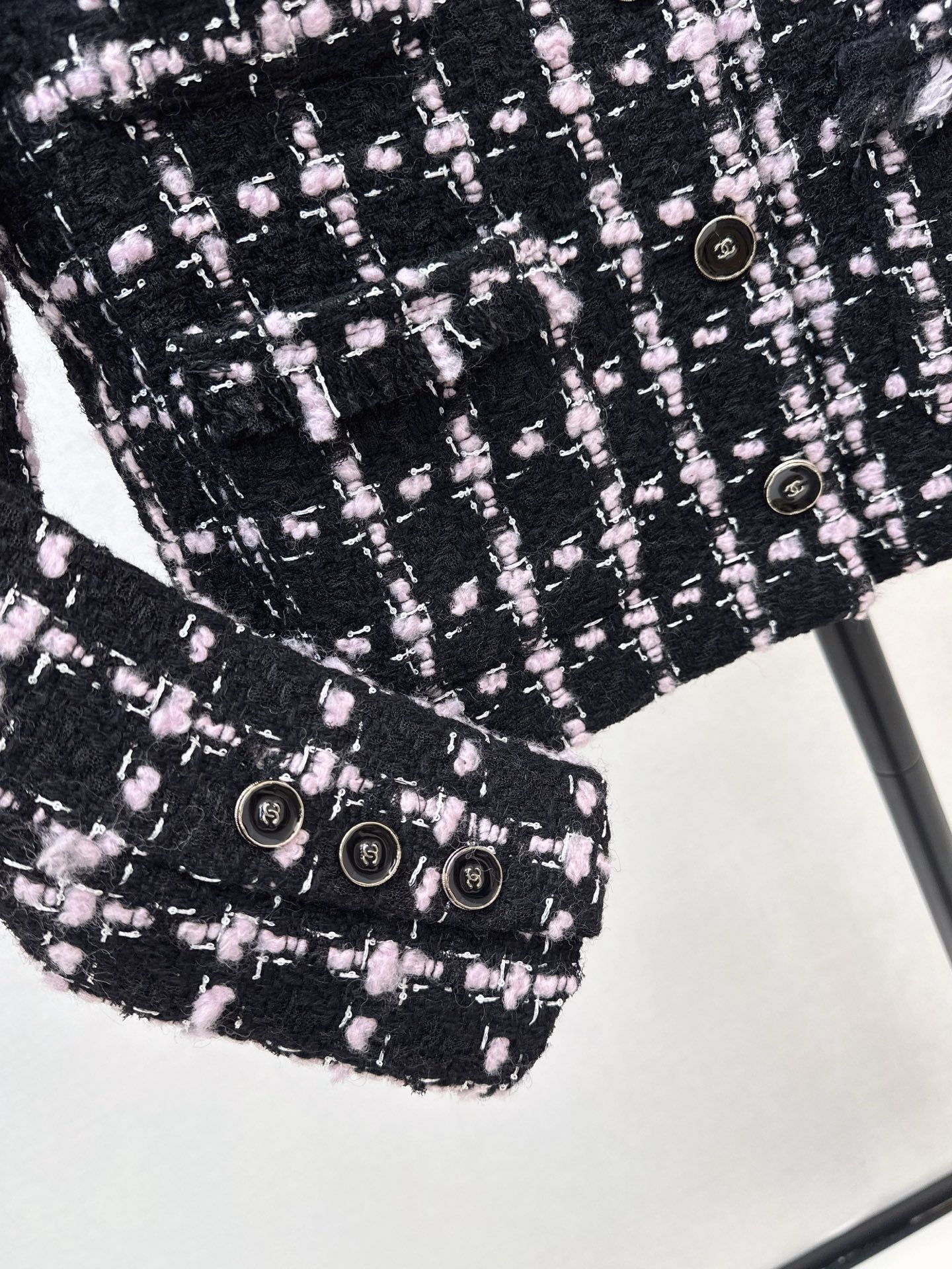 25 New style positioning plaid woven short jacket + A-line skirt set