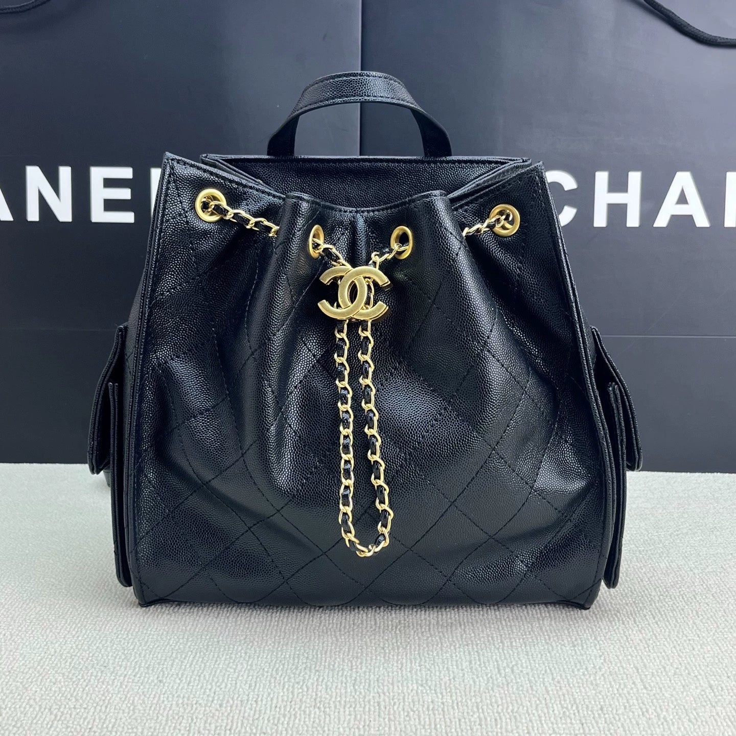 Vintage gold coin button drawstring bucket bag