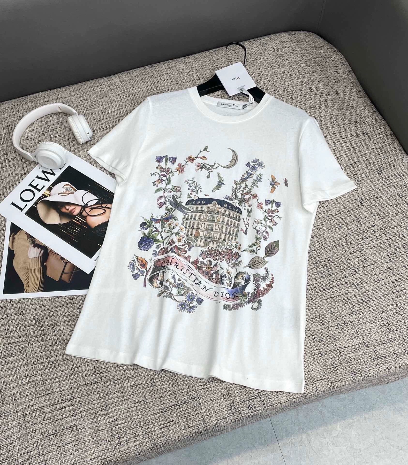 25 Early Spring New Print Black Diamond Beaded Letter Pattern T-shirt