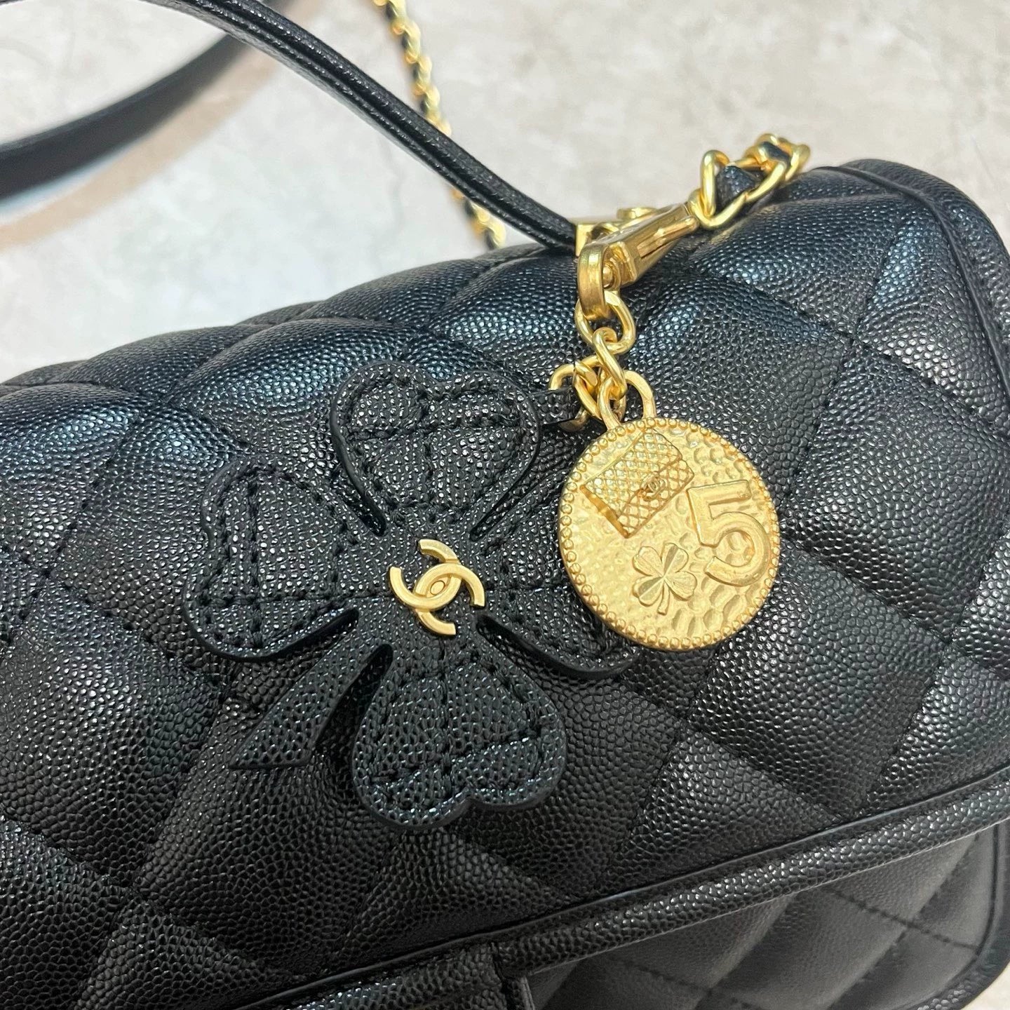 Don't miss out on this square shaped bag; The lychee cowhide and sand gold texture are full of four leaf clover medal accessory pendant, which has a strong vintage feel! The overall style is very "academic style" with a strong vintage and medieval feel