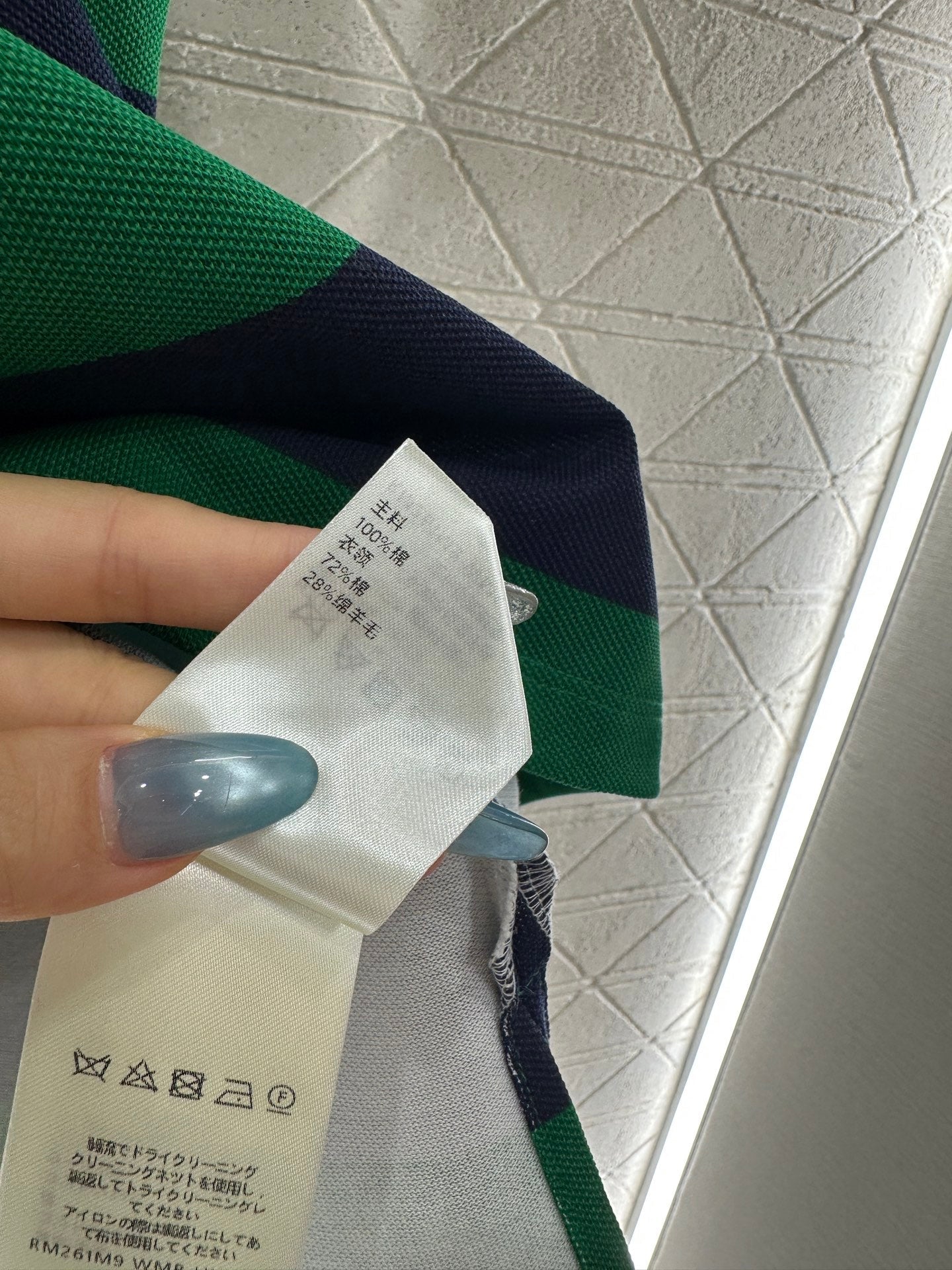 Made of Zhudi cotton weaving, it is elastic and comfortable, with a rich texture. The polo short sleeved top with a collar is cut, presenting a casual and lazy wearing style on the upper body. The large body has blue-green stripes โž• The white jacquard embroidery with dark pattern collar creates a double collision and interlocking effect, and the button half open color adds a high and casual feeling to the outfit. The interior is fashionable and eye-catching when worn alone. The letter logo is embellished on the chest, echoing the rowing print on the back, highlighting the brand style. The loose silhouette is oversized and fashionable, reducing age.