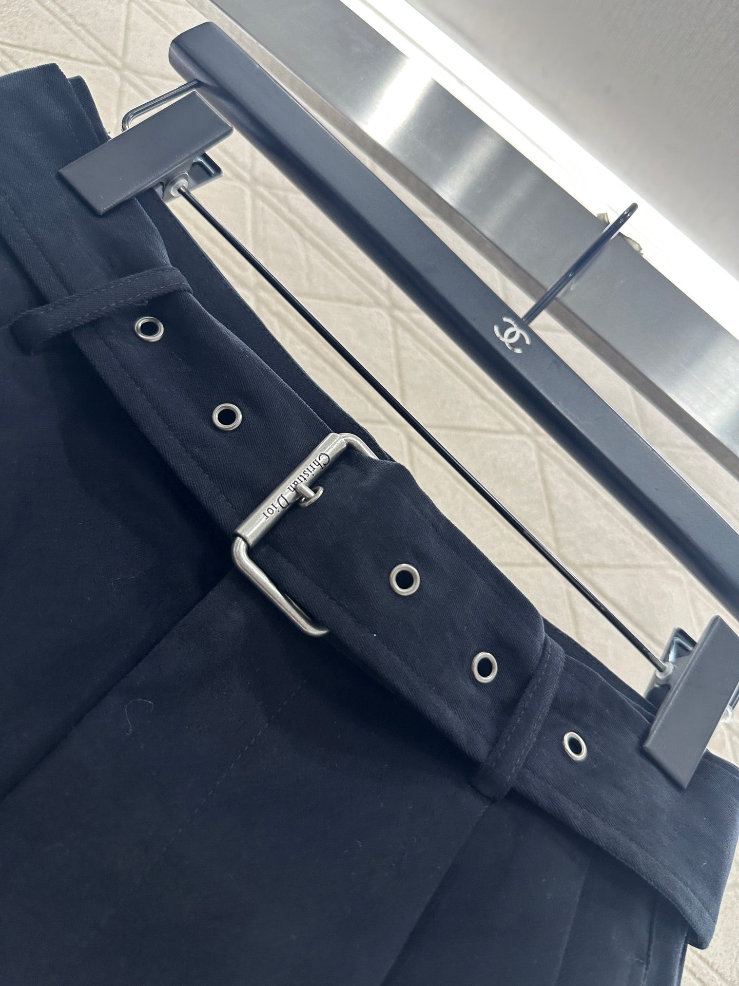 Made of all cotton material, with a rich texture and stronger texture, the appearance is high-end. The waist belt is high waisted straight leg pants, and the honeycomb CD embroidered perforated waist belt is integrated with a letter engraved logo buckle to highlight the brand positioning and increase the sense of hierarchy. Wide leg straight tube design, cleverly crafted three-dimensional pleat details on the waist and crossbody, embellishing the fake wide crotch, versatile dressing, not picky about body shape, relaxed and stylish, the first choice for early autumn dressing, layering to create a fashionable and trendy style.