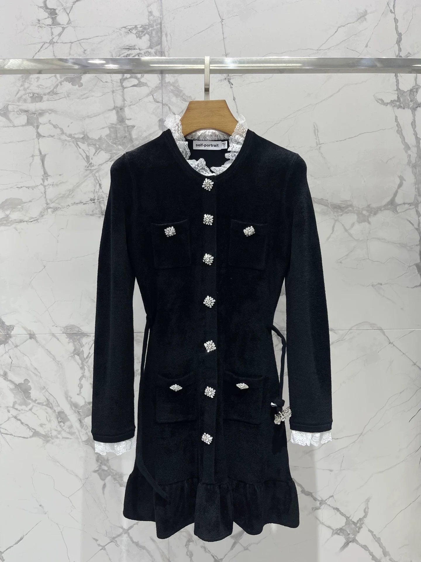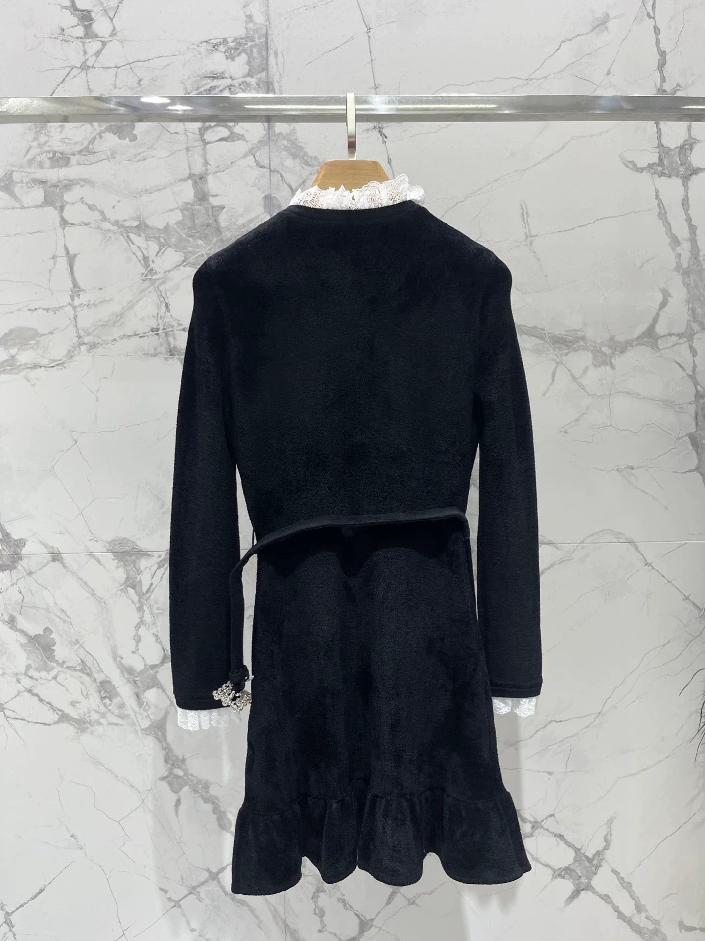 25fw Black diamond velvet chenille knit dress