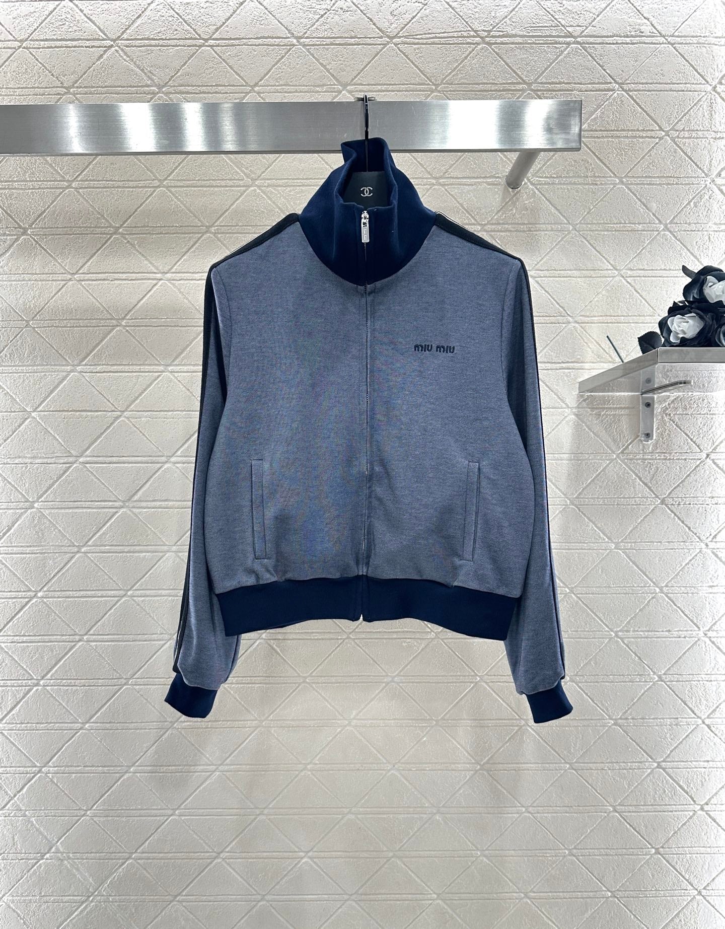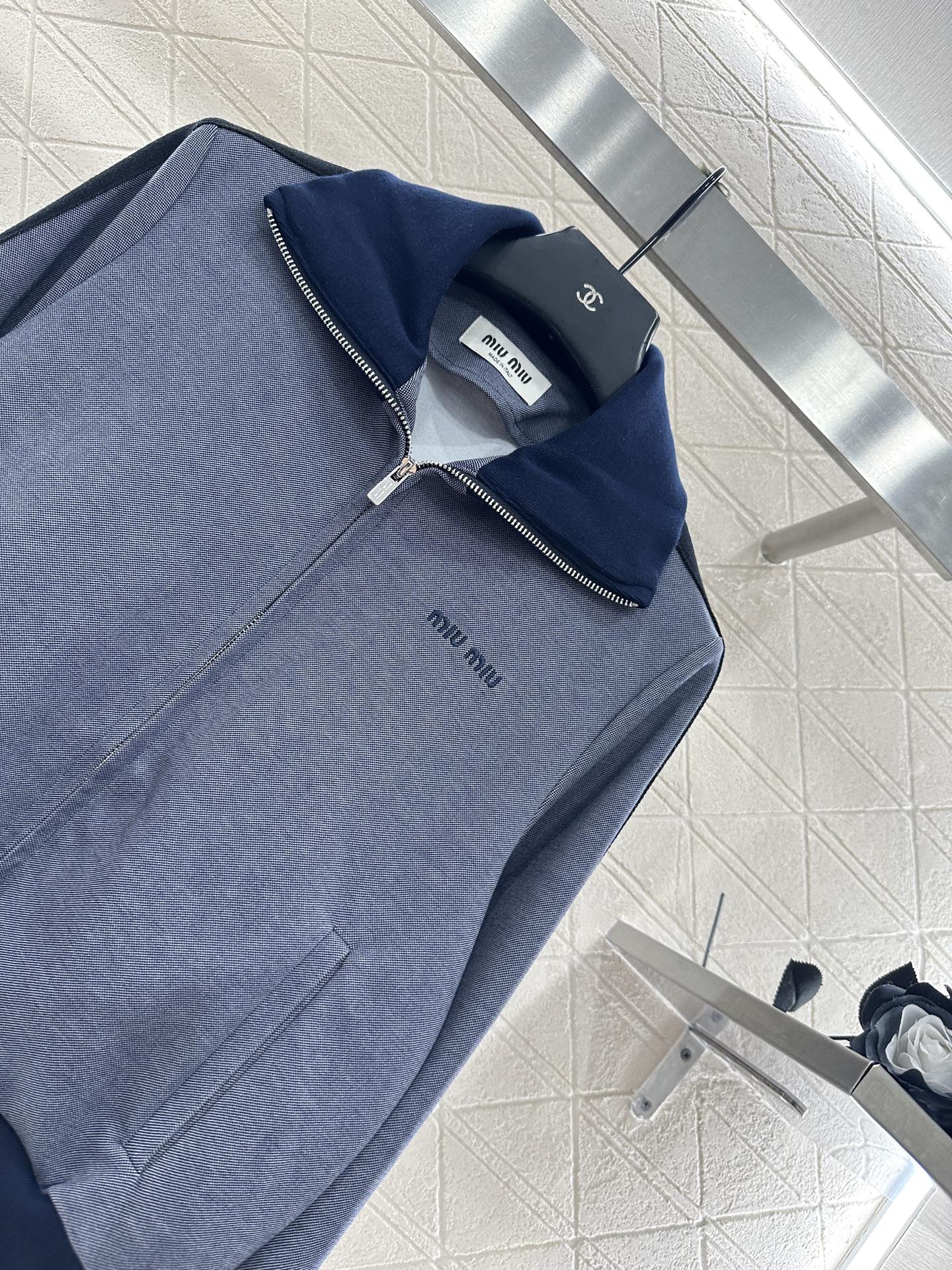 Made of wool material, with a high-end texture and stylish dressing, the front shoulder lapel jacket features a grid pattern on the collar and cuffs, setting a simple and fashionable tone while showcasing the brand's high-end style. The entire body is embellished with engraved letter round buttons, and the symmetrical flap pockets are rich in details. Paired with bee CD embroidery to embellish details, the cut is neat and decorates the body, easily highlighting the high-end and elegant style. It is fashionable and stylish to wear, suitable for daily commuting