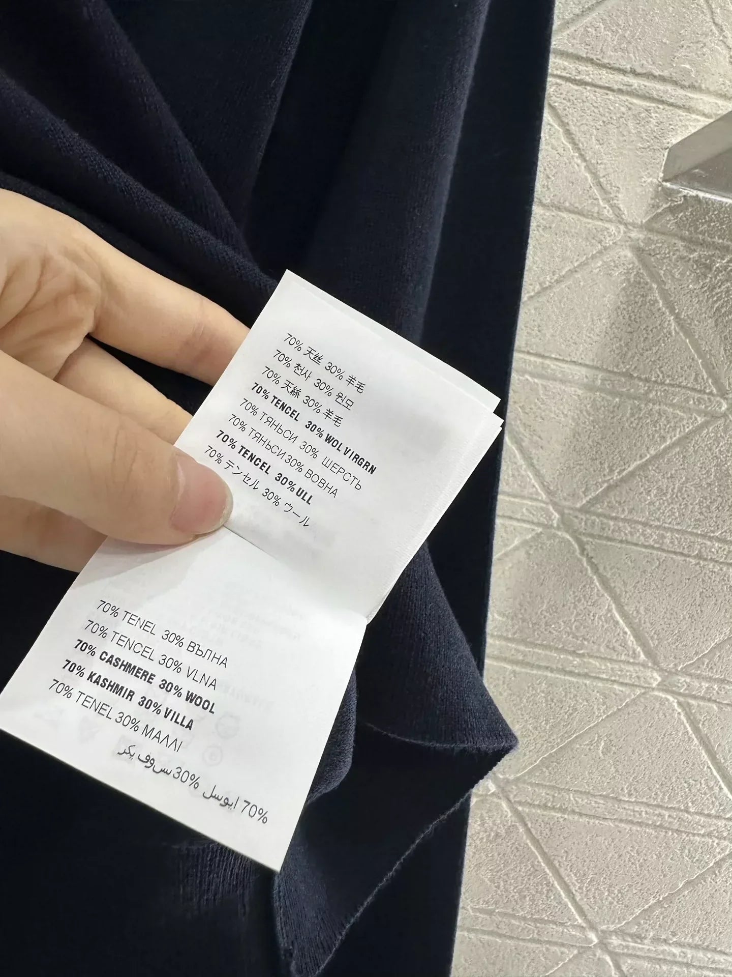 Silk and wool yarn weaving with delicate and comfortable texture, skin friendly lapel knit long sleeved pattern, whole body fine crochet texture design, exquisite thread edging ➕ Round petals, lapel stripes, contrasting colors, stitched together to create a sense of layering. One side chest with pockets ➕ Iconic letter logo embroidered embellishment highlights personality, highlights overall dressing sense, light luxury and fashionable temperament