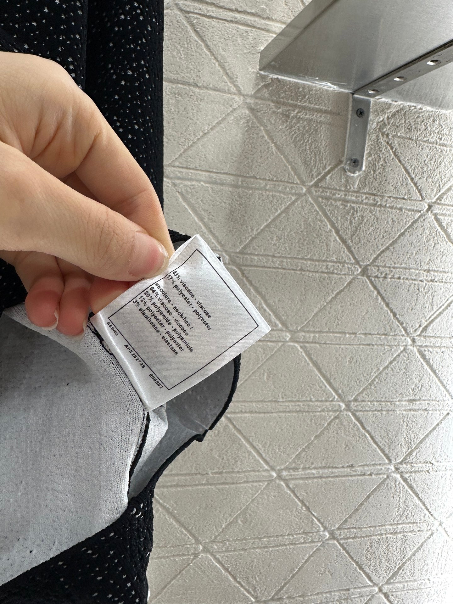 Imported yarn weaving texture, high-end and comfortable round neck knitted cardigan cut, with white inside and black hollow outside to create a double layered contrasting effect. The shoulder and neck skin exposure is just right, and the wavy triangular pattern on the collar and front placket is slim and elegant. The pocket edges and cuffs are matched with the processing, embellishment, mold carving, round buttons, rich visual effects, showing a light luxury and fashionable temperament on the upper body. It can be worn alone or in layers, and is the first choice for autumn and winter fashion