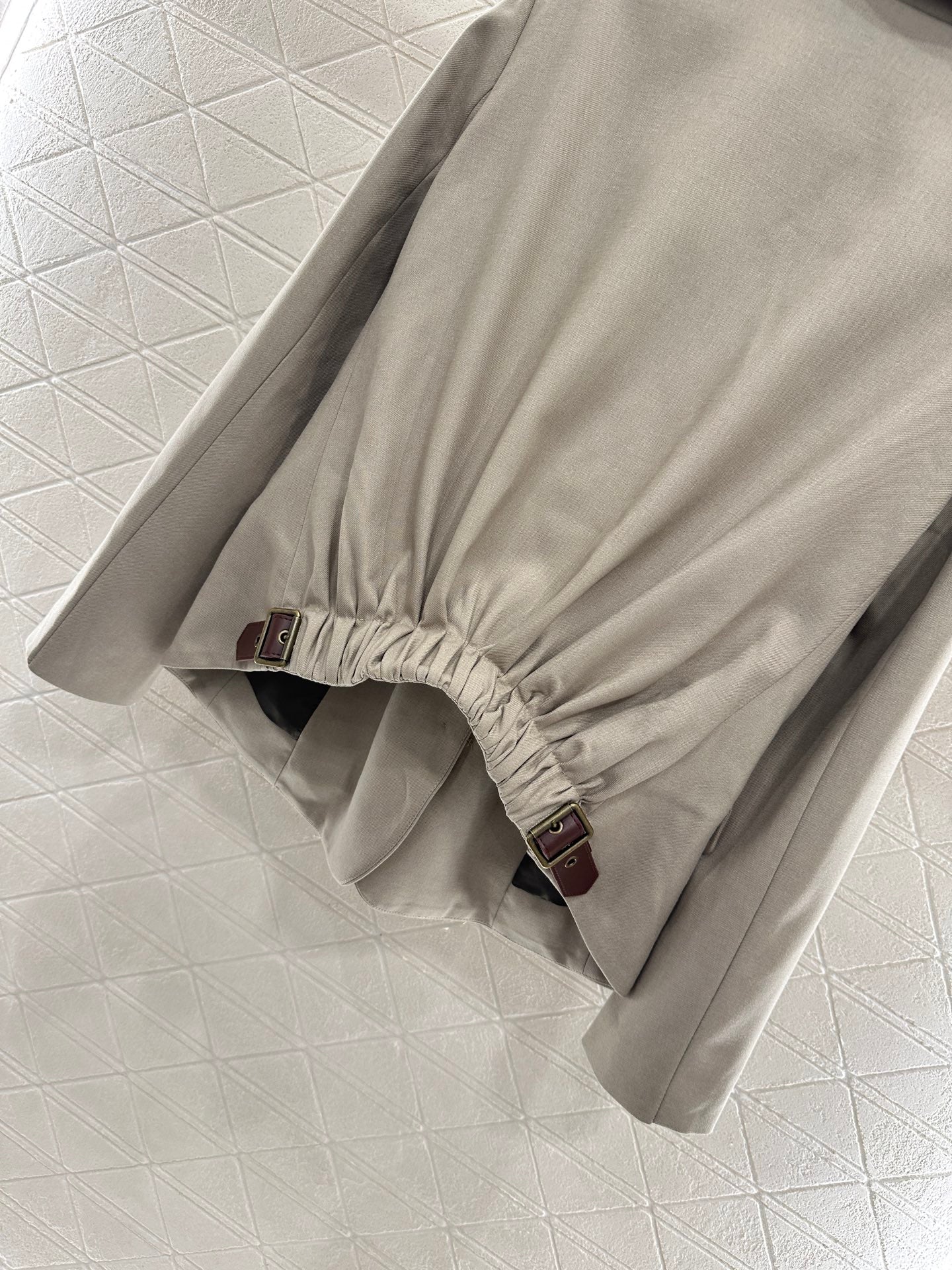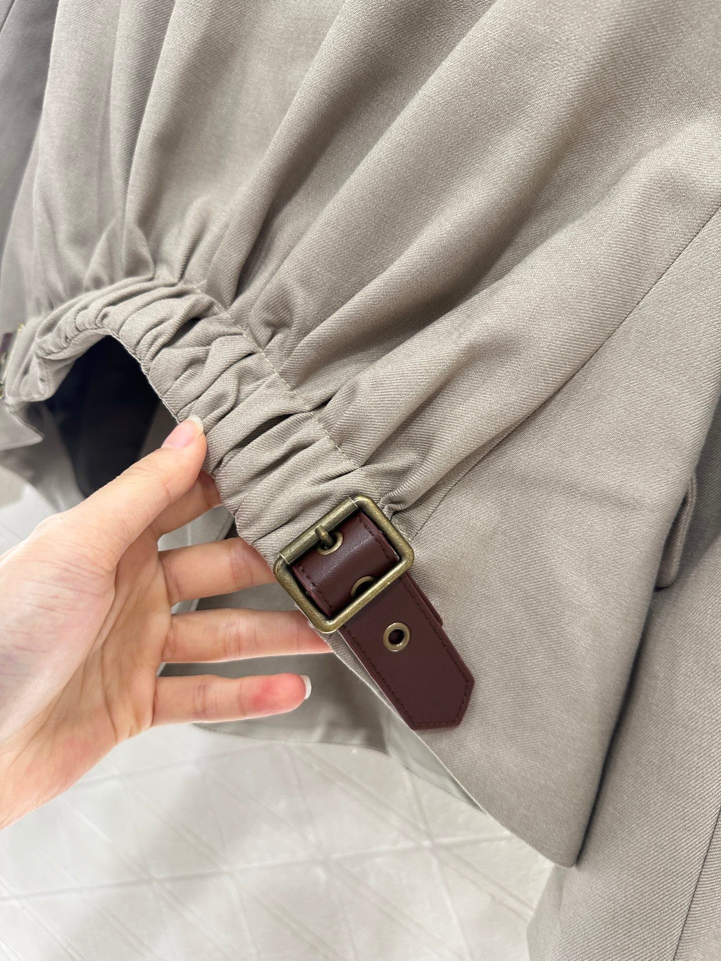Exquisite imitation wool material, texture, luster, high-end, flowing, stylish, shoulder shaped suit ➕ Straight leg wide leg pants set with a gun collar and a three-dimensional cut on the chest, showcasing the brand's design sense. Simple and atmospheric, with elastic pleats at the back waist and leather buckle details added to the design highlights. High end and stylish, paired with pants from the same series, the waist of the pants echoes and harmonizes, deepening the brand's memory. It is the preferred choice for dressing for attendance and events, with a charming aura
