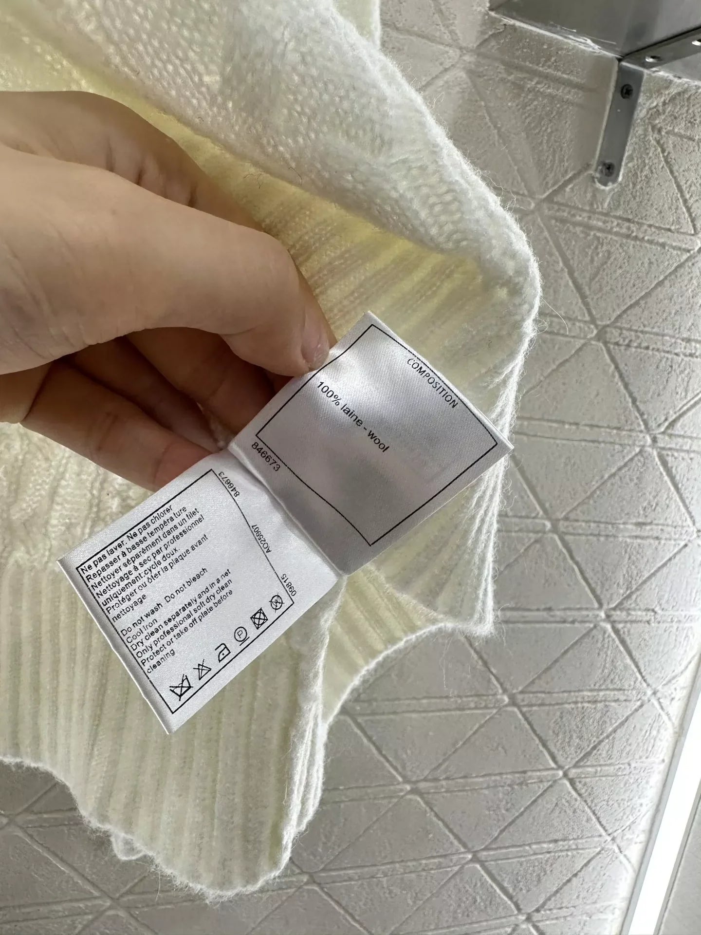 soft and comfortable to the touch, with clear texture. Round neck design, double C logo on the chest, hollowed out Fried Dough Twists knitting process, slim and slim
