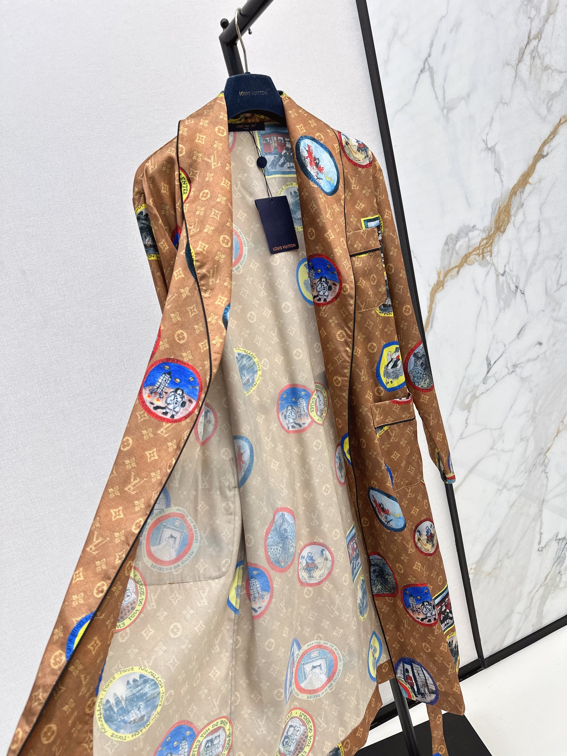 Thick twill material is skin friendly, comfortable, and not easy to stretch. Four leaf clover letter print pattern ➕ Logo element badge relaxed and fashionable with a full sense of socialite and old money. Long nightgown over the knee length, slimming and versatile. Paired with a fabric belt to outline the waist and divide the proportion, coordinated with a series of sets to make it more exquisite. Elegant and lazy upper body, suitable for both home and outdoor wear