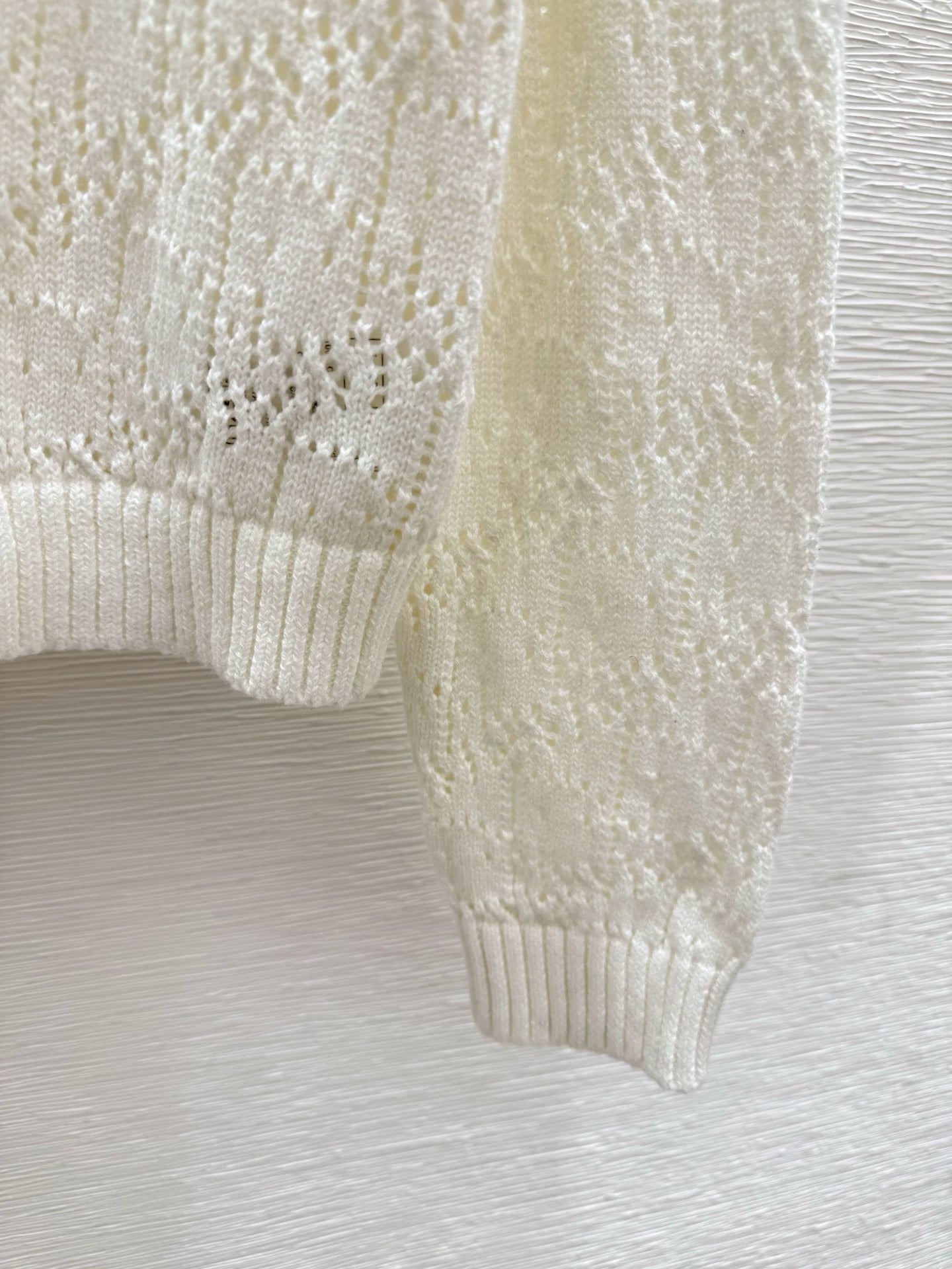 The fabric is 100% cotton, with exquisite hollow pattern design and black buttons embellishing the front. Round neck design, short silhouette, suitable for wearing in spring and autumn seasons.