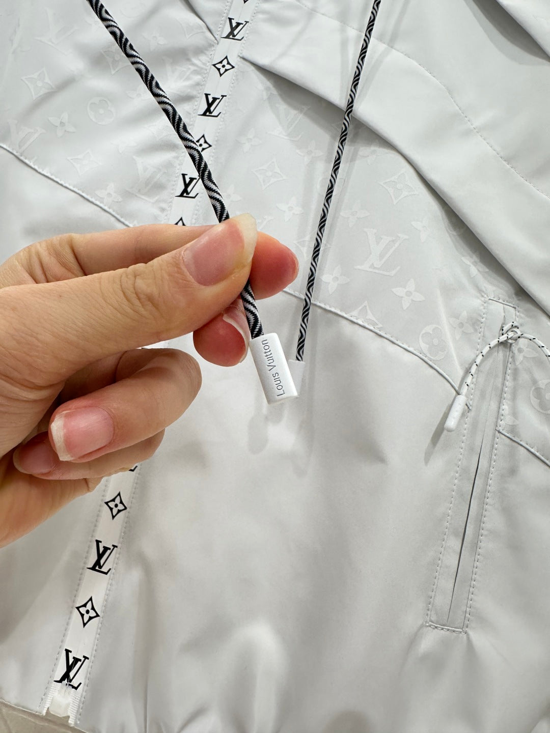 Thickened charging nylon material, breathable and comfortable, with a full texture. Hooded drawstring jacket, with a large body and four leaf clover elements and letter logos diagonally divided into contour lines to create a sense of hierarchy. The printed letters on the front placket are decorated in a high-profile manner to showcase taste. The elastic cuffs are tightened while increasing the windproof and cold proof effect of the twisted flower drawstring, which fully enhances the agility and practicality of outdoor activities