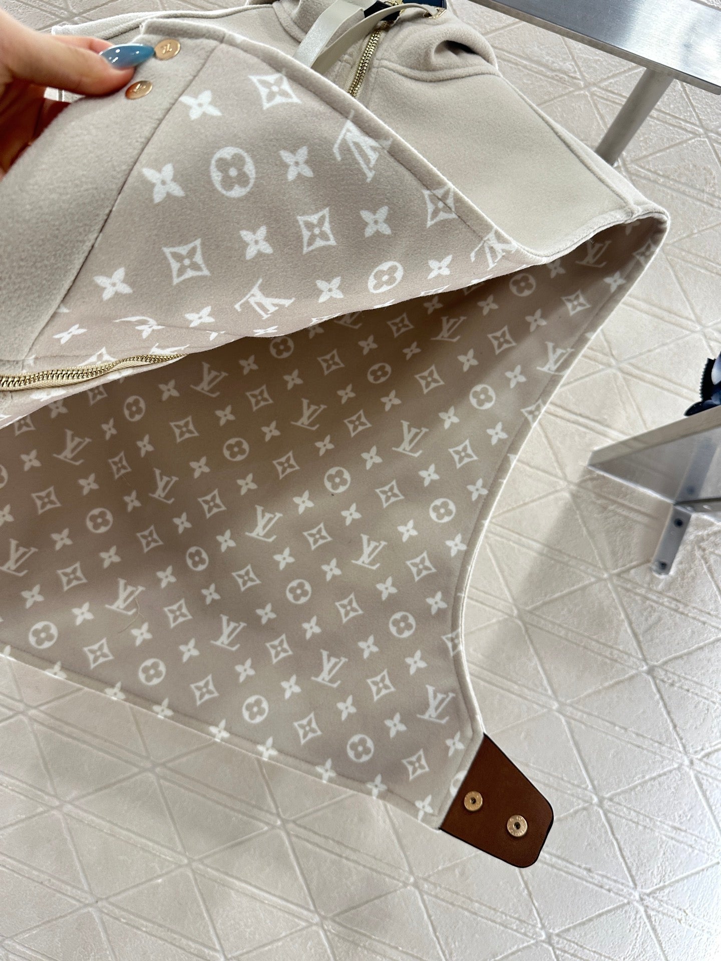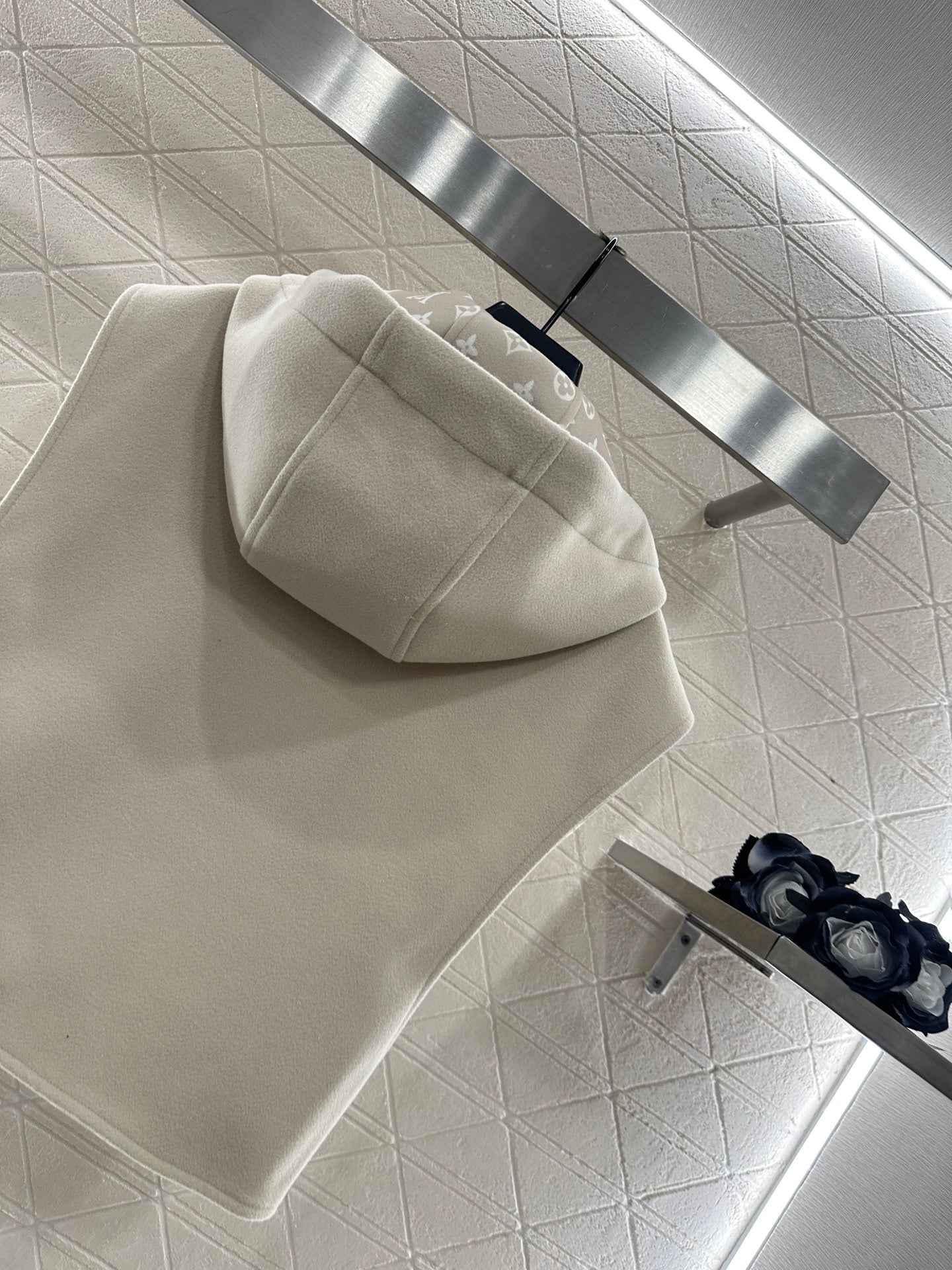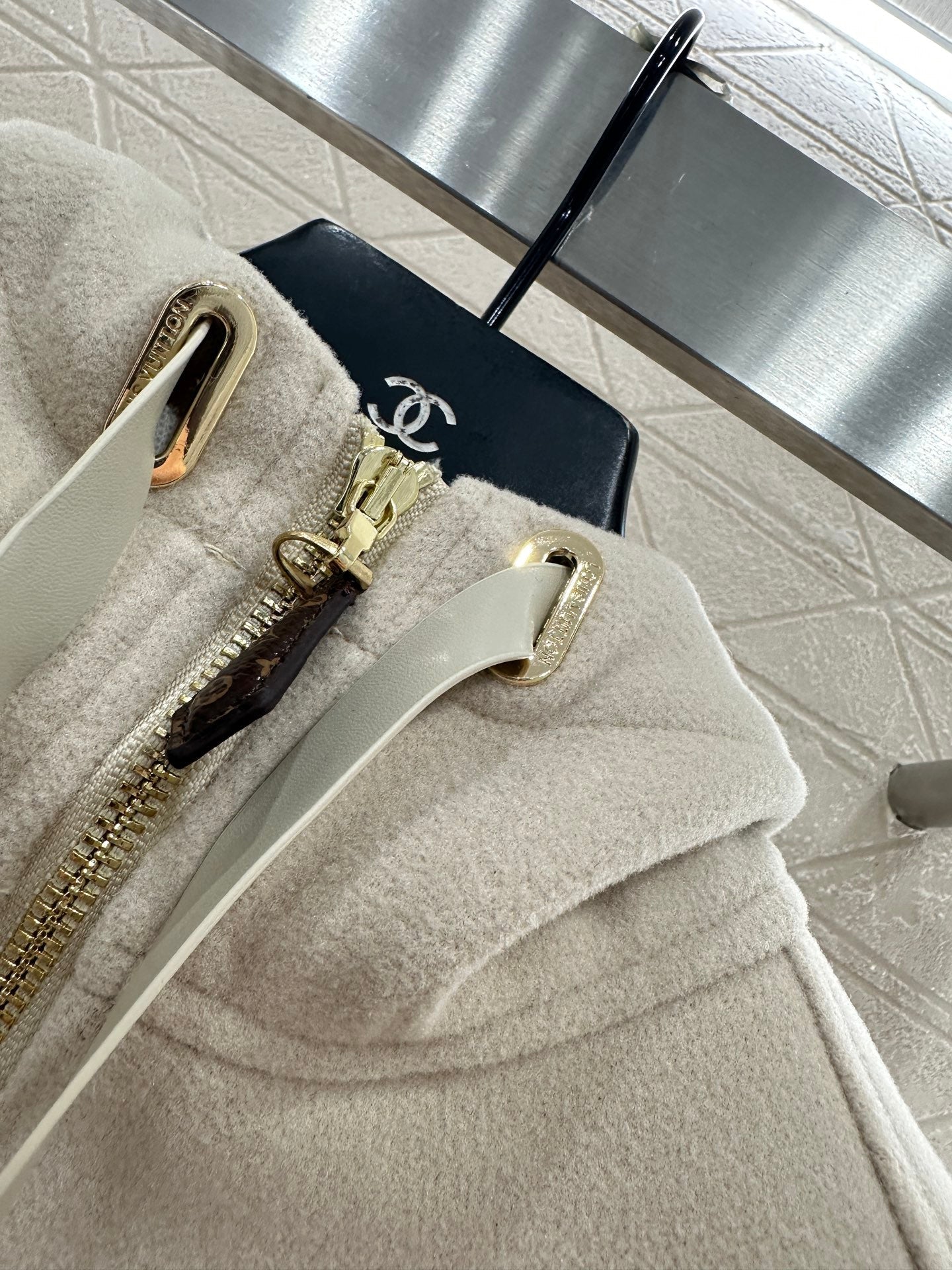 Wool wool material, processed with craftsmanship printing, adds color and fashion, hooded zipper vest style, large body plain color stable and low-key, lined with four leaf clover elements and letter logos, inadvertently revealing and adding detail levels, highlighting the brand's low-key luxury. The adjustable zipper with slit design is fixed with iconic leather buckles on both sides of the waist, and the shoulder style is high-end and fashionable. Whether it is daily travel or leisure time, it can be easily controlled