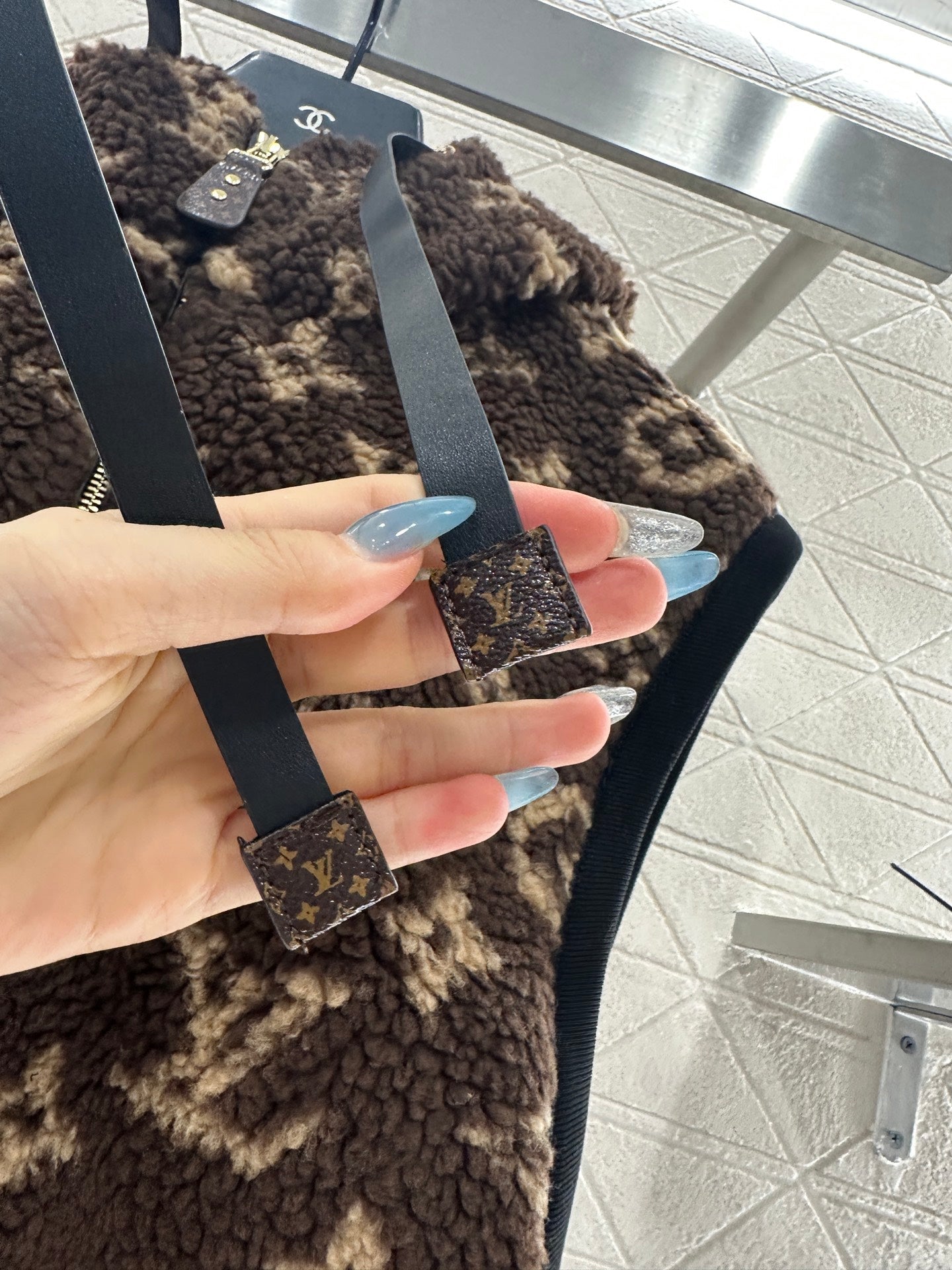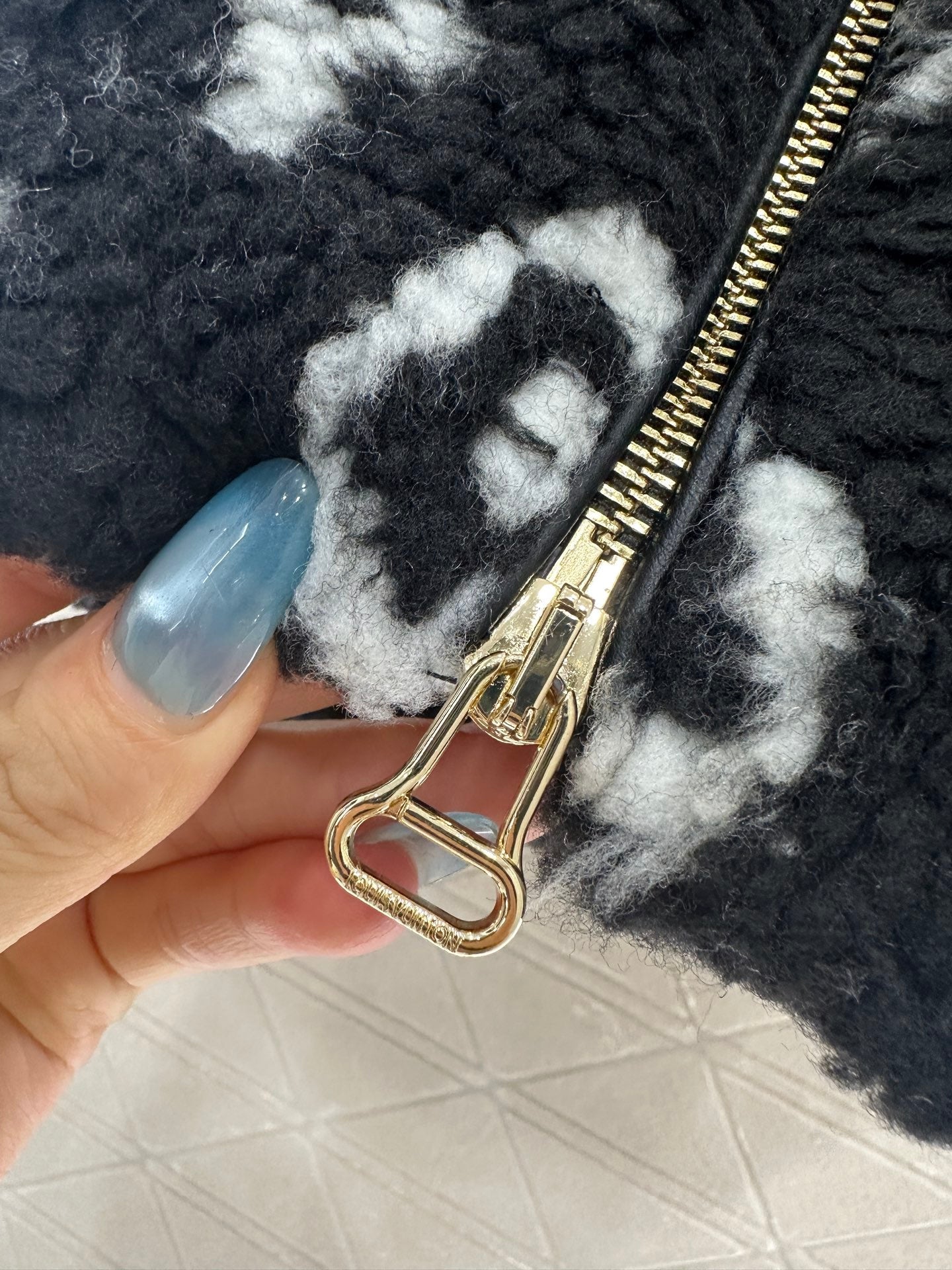 Made of fleece material, the texture is noticeably soft and skin friendly, adding a touch of fashion and color. The hooded zipper vest is designed with a large body of Teddy cashmere wool printed with four leaf clover elements and letter logos, highlighting the brand's low-key luxury tone. The zipper is adjustable with slit design, and the iconic leather buckles on both sides of the waist are fixed with a fashionable style, making it easy to handle both daily travel and leisure time.