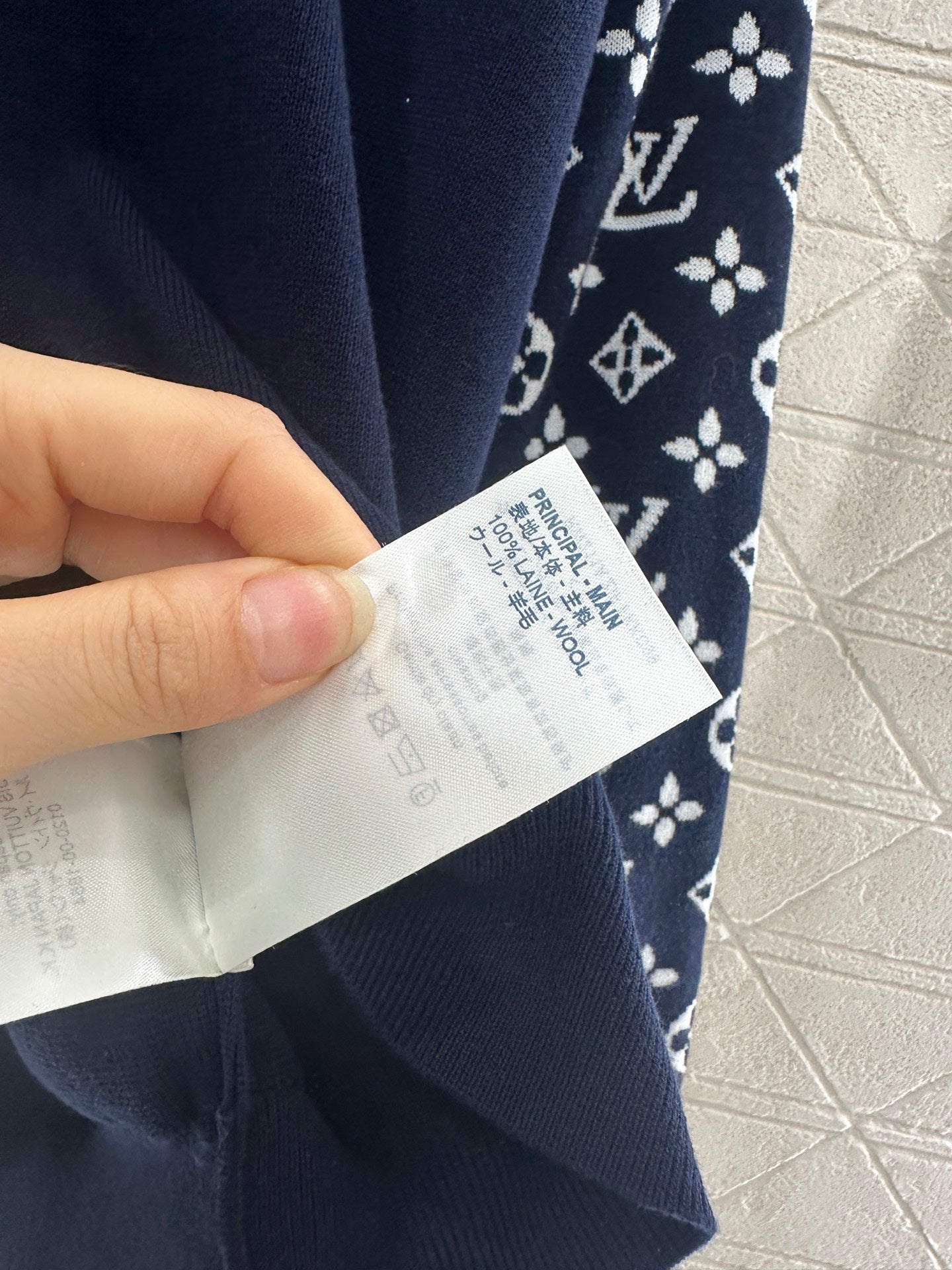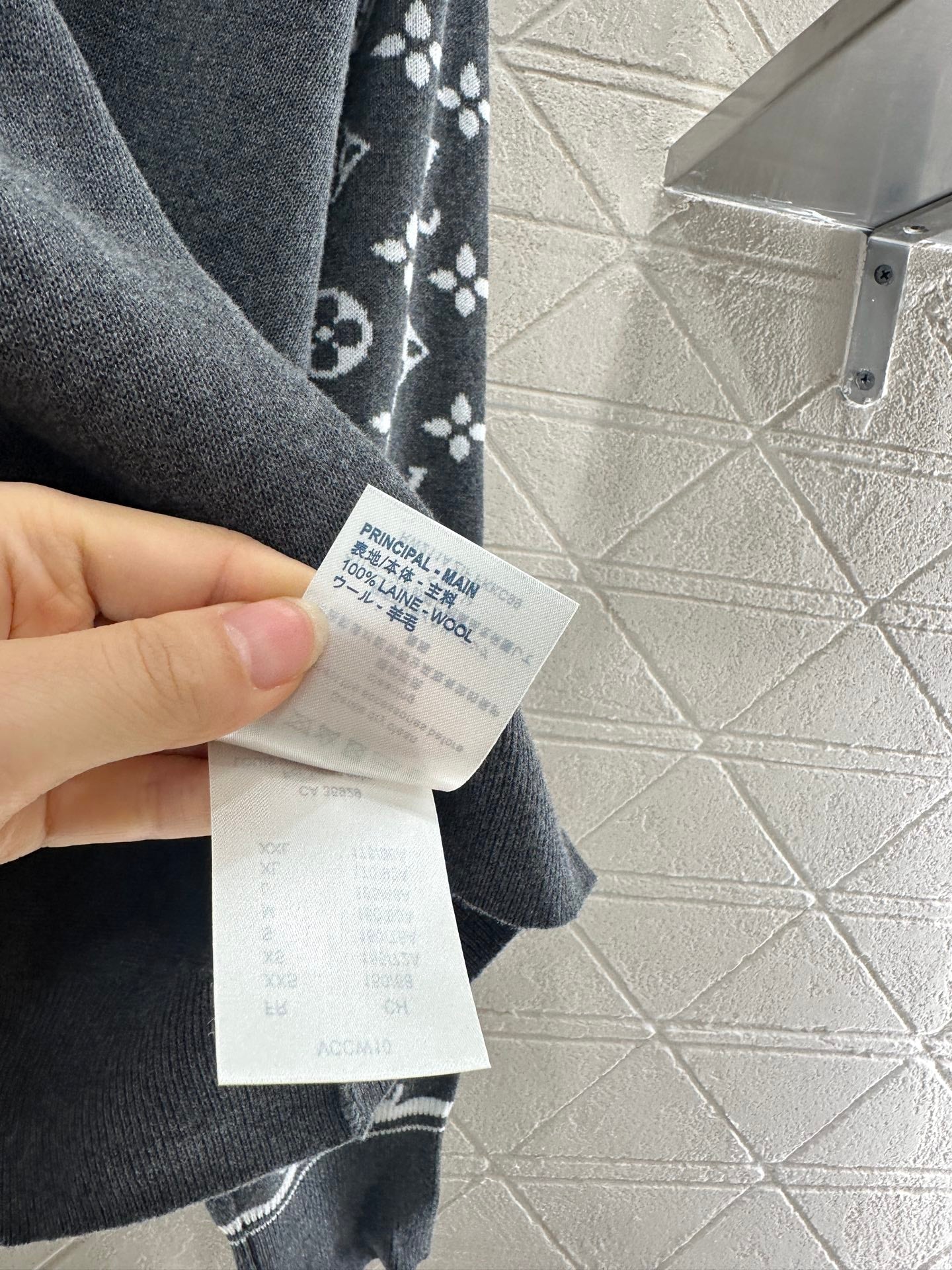 Wool yarn weaving texture, high-end and comfortable knit long sleeved cut, two sleeves decorated with iconic four leaf clover element letter pattern and body solid color collision, collar front embellishment logo chain eye-catching full marks highlight brand personality, highlight wearing sense of luxury, wrapped edges, vertical pit stripe texture design makes simple styles wear out individuality, exquisite wearing shows relaxation tone