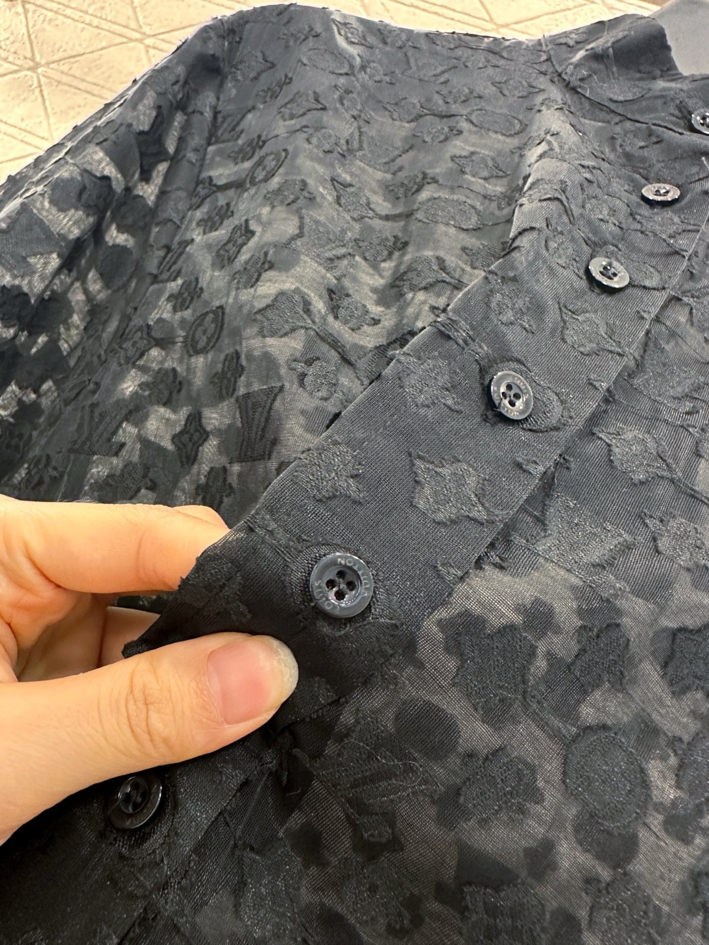 Jacquard cotton material with comfortable and delicate texture, long sleeved waist cinching dress with neat cutting and slim fit, button open waistband, vertical cutting for waist cinching effect, layered cake swing, agile and elegant, combined with an old flower waistband to highlight the proportion advantage of short upper and long lower waistline lines. The whole body is covered with four leaf clover elements and letter jacquard patterns to highlight the brand's exquisite sense
