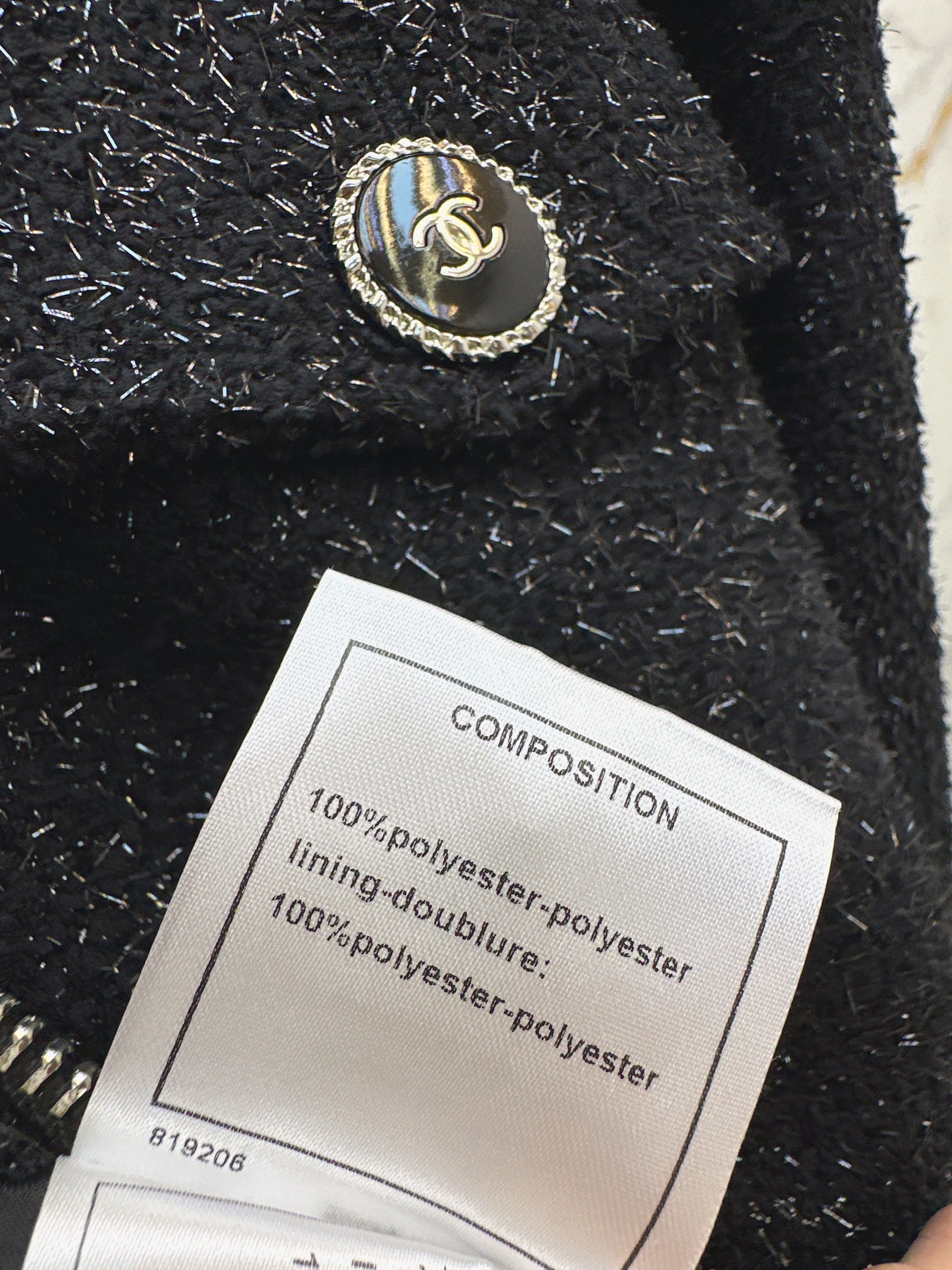 The silver wire coarse spinning material has a clear texture and superior quality. The black silver wire interweaves to create a coarse tweed texture with obvious threads, a large lapel, and a zipper jacket. The design is easy to create a small fragrance style model. The symmetrical flap pocket on the chest shows the high-end socialite style temperament. It is fashionable and easy to attend formal occasions and daily commuting