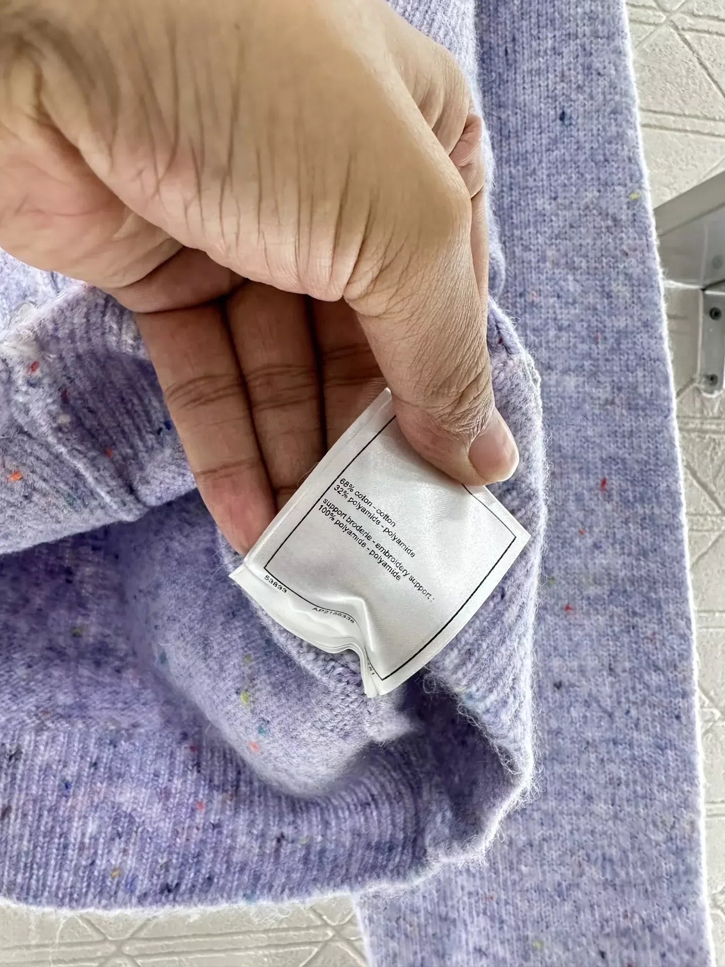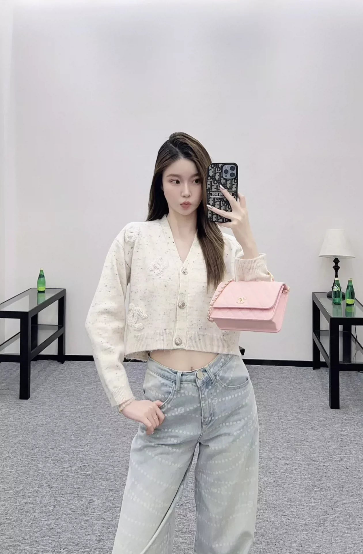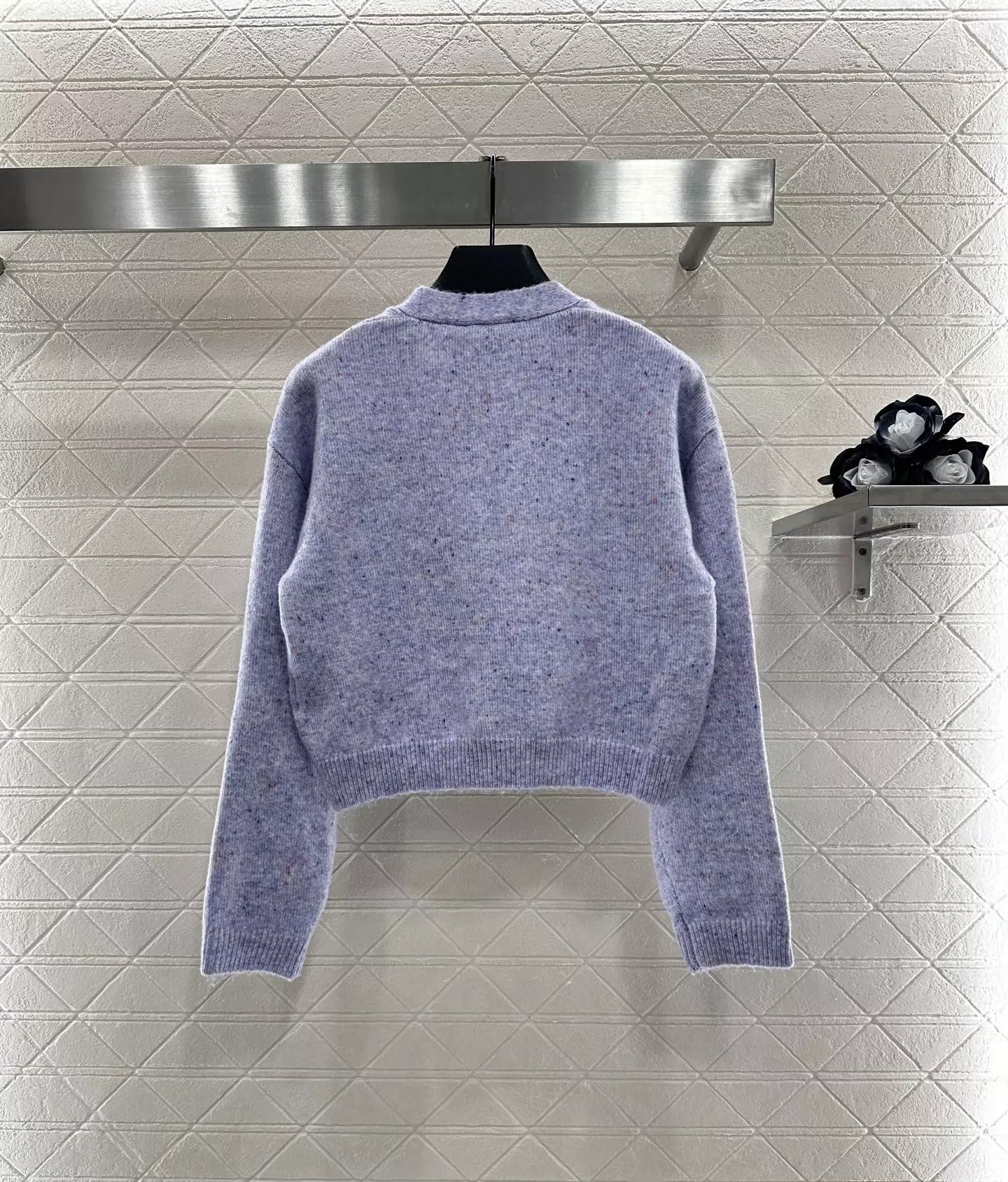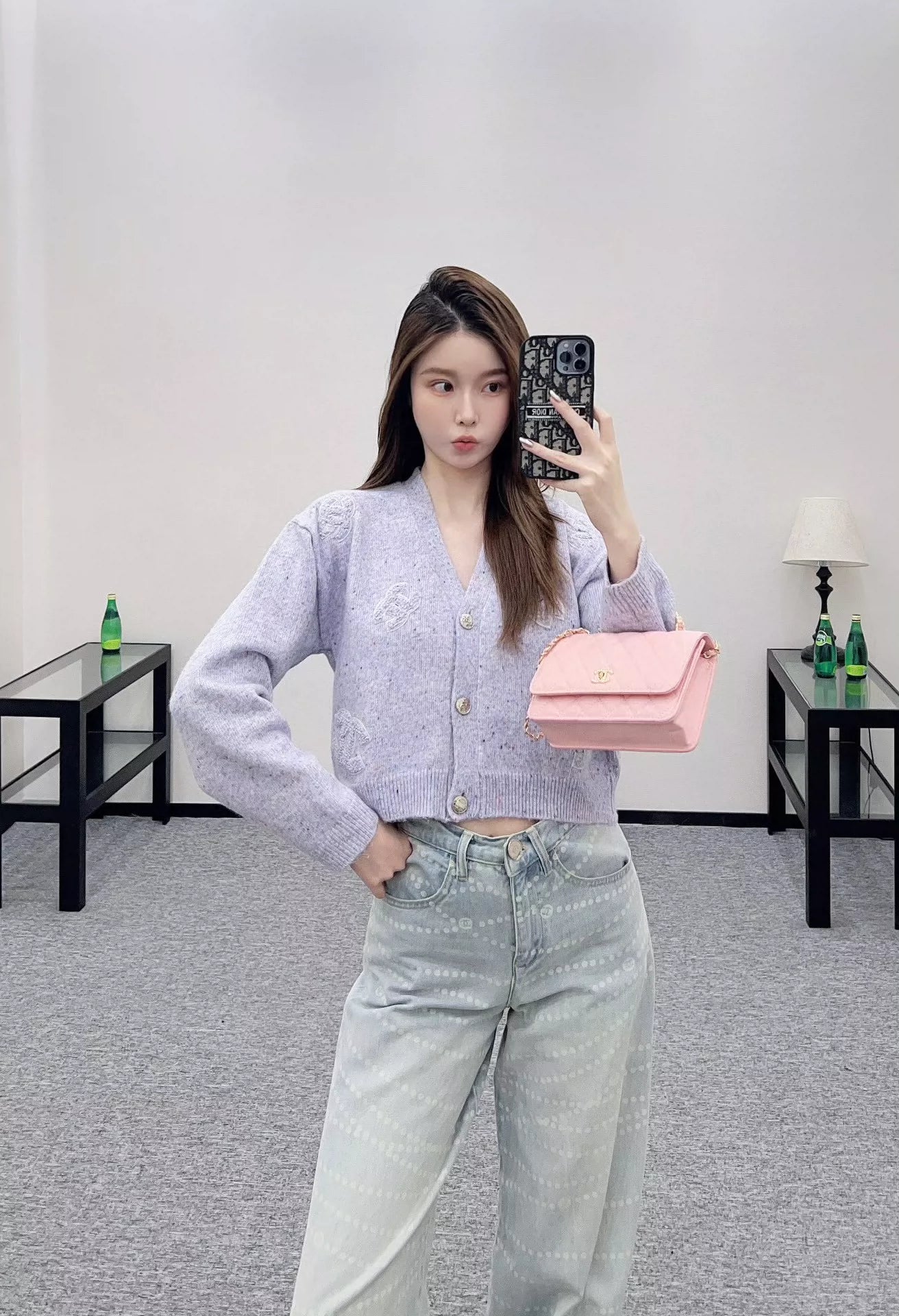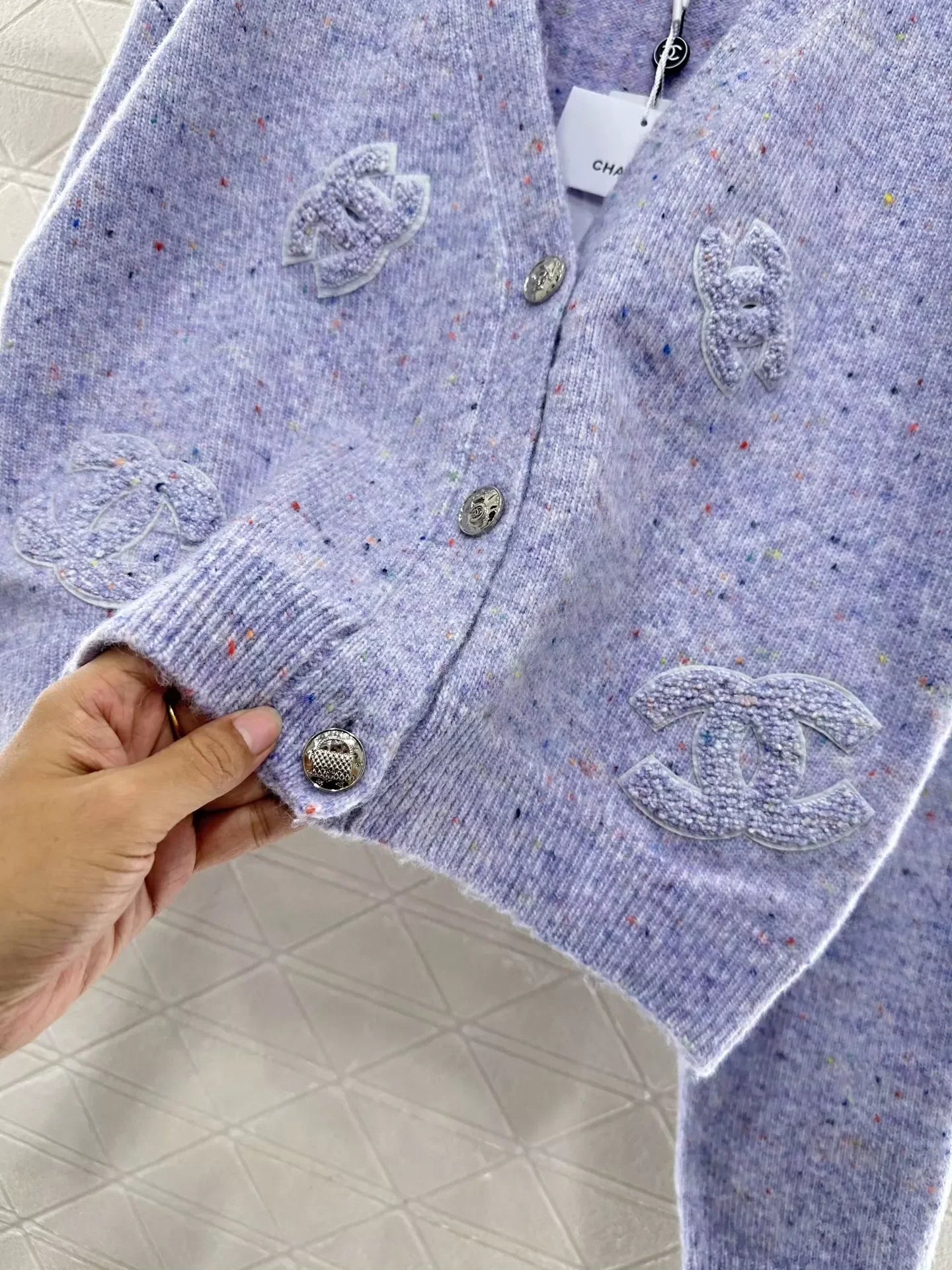 Cotton yarn weaving with delicate and comfortable texture, easy to wear V-neck short knitted cardigan embellished with molded twist button to modify shoulder and neck lines, while adding exquisite feeling. Whole body decoration, three-dimensional plush logo, color dot base color, adding vitality, showing fashion and breaking the dull atmosphere of autumn and winter