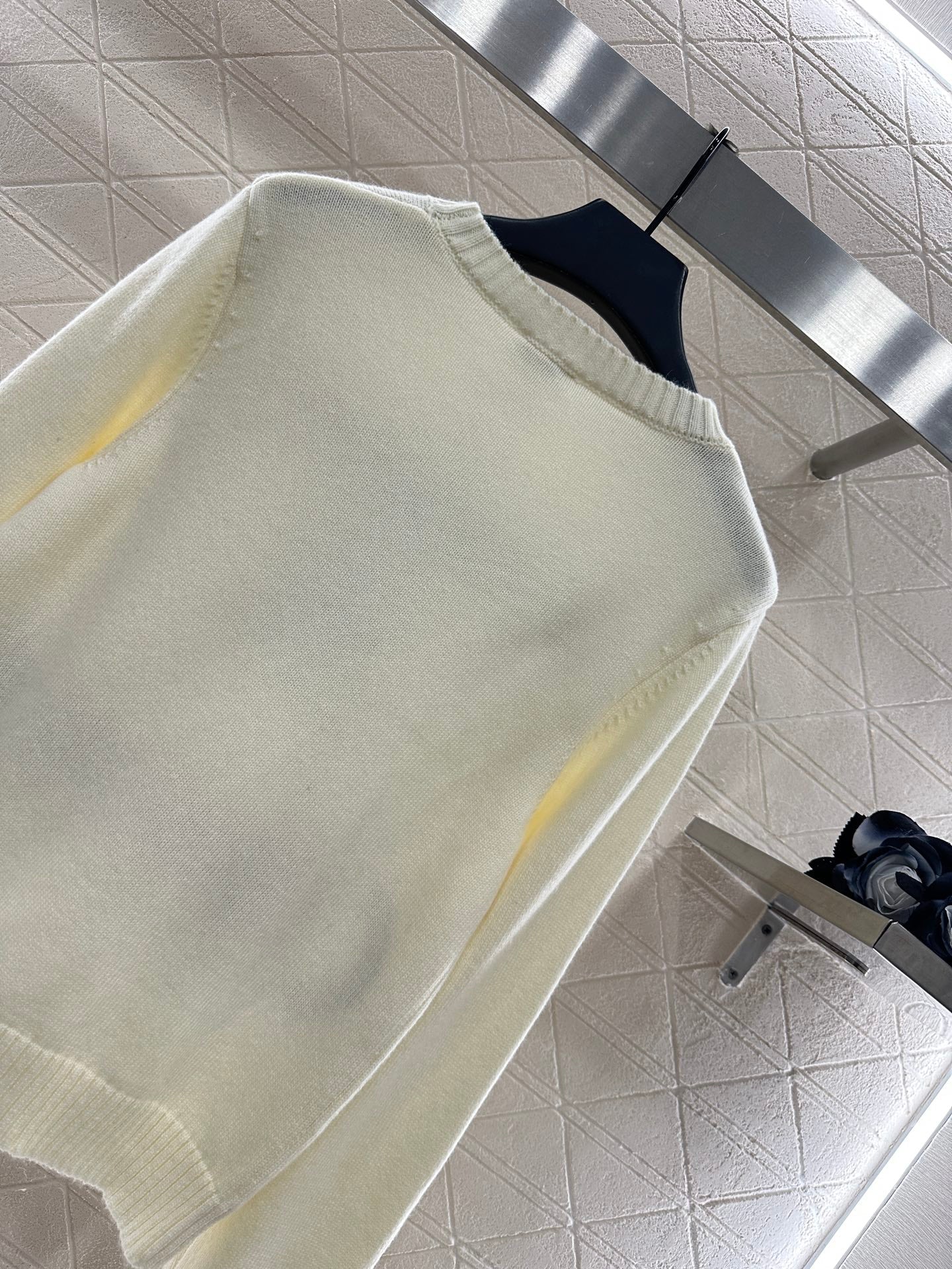 Crafted from cashmere yarn, this sweater has a premium and comfortable texture. It is cut with a pullover knit sweater and features a solid color throughout the body. The chest is adorned with iconic letter logos and double C patterns, creating a collision of colors that highlights the brand's personality and exudes a sense of sophistication. It allows simple styles to be worn with exquisite personality and a relaxed tone, exuding a light luxury and fashionable temperament. It can be worn alone or in layers, and is the preferred choice for autumn and winter fashion