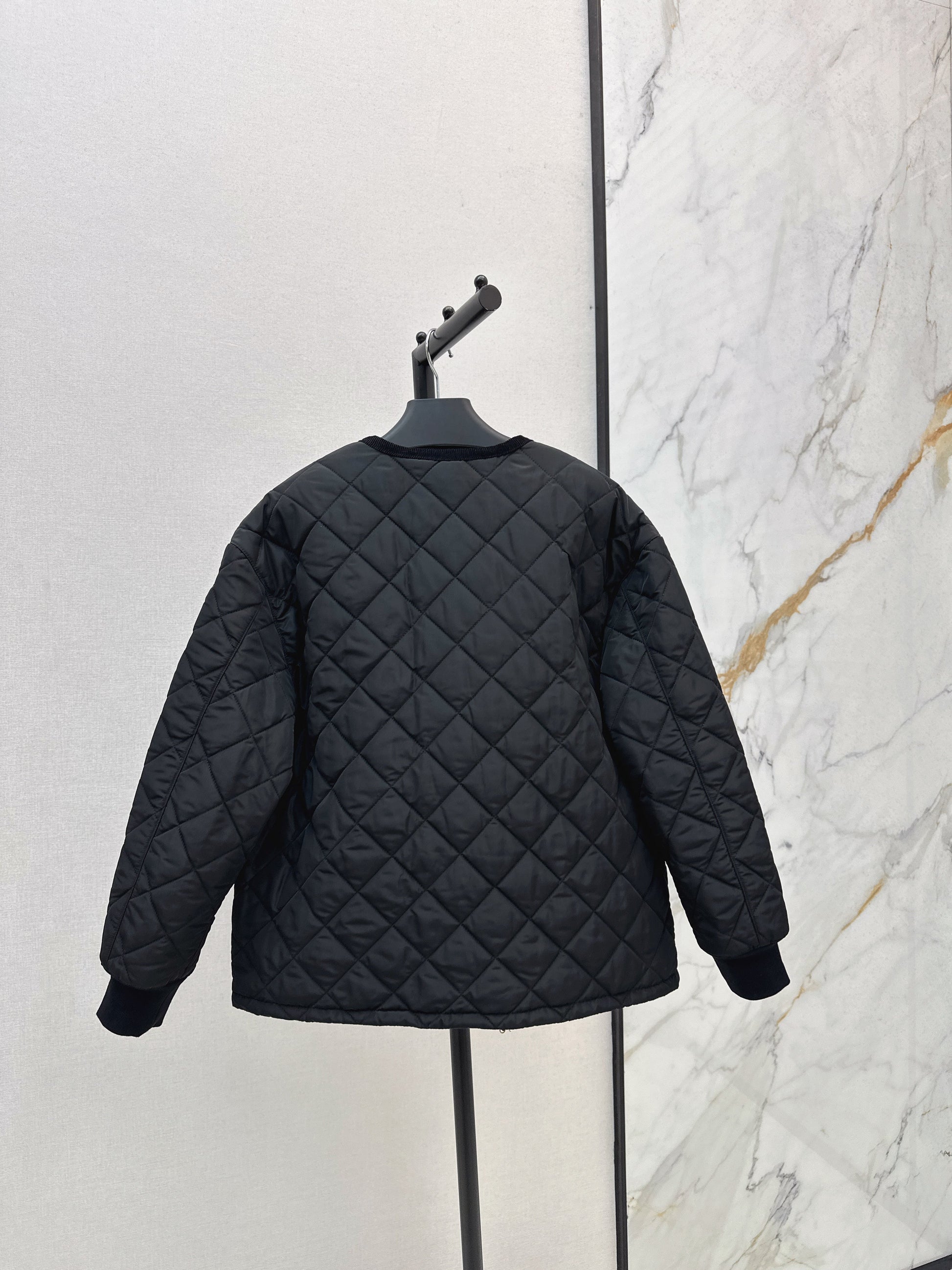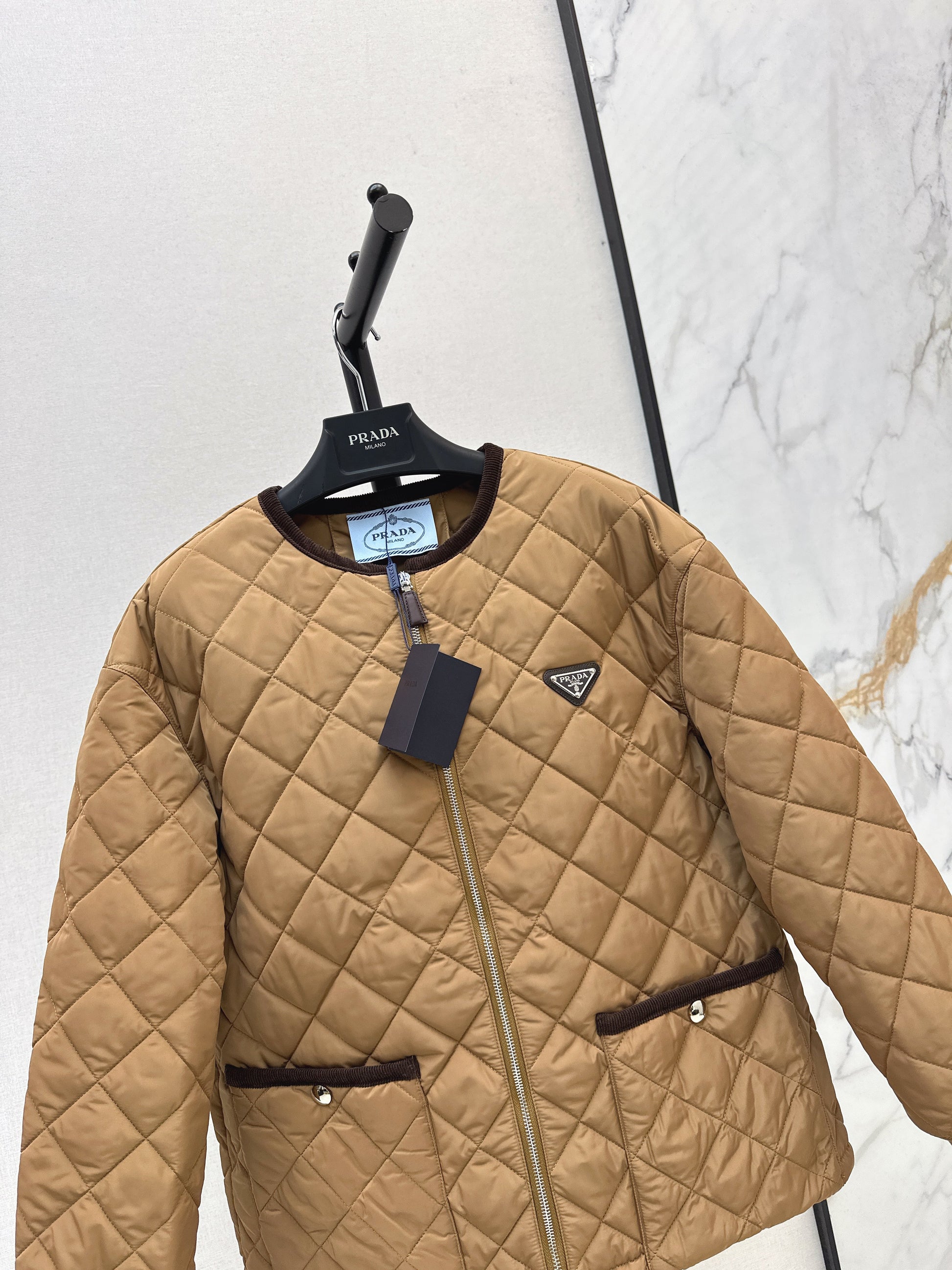 High density recycled nylon fabric round neck design, drawstring at the hem, waist cinched, windproof design, metal triangle logo, low-key yet fashionable, imported machine pressed thread grid technology, three-dimensional cutting, British style versatile and handsome